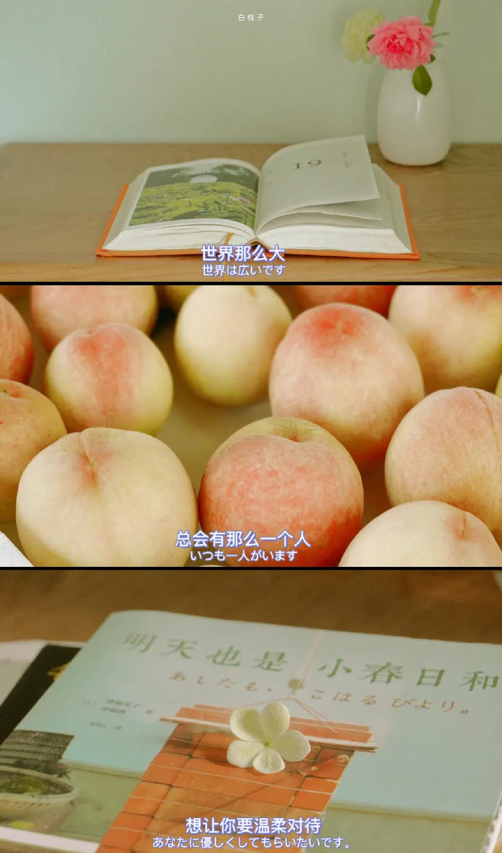 白桃子唯美小清新三格文字手机壁纸图片