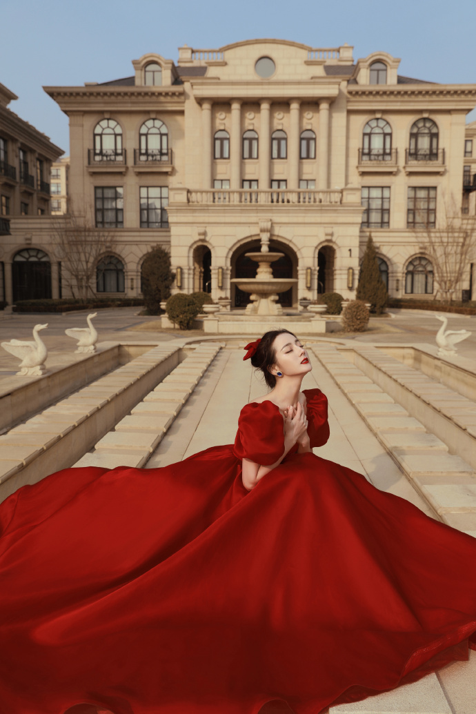 赵丽颖V领长裙温婉高清写真图片