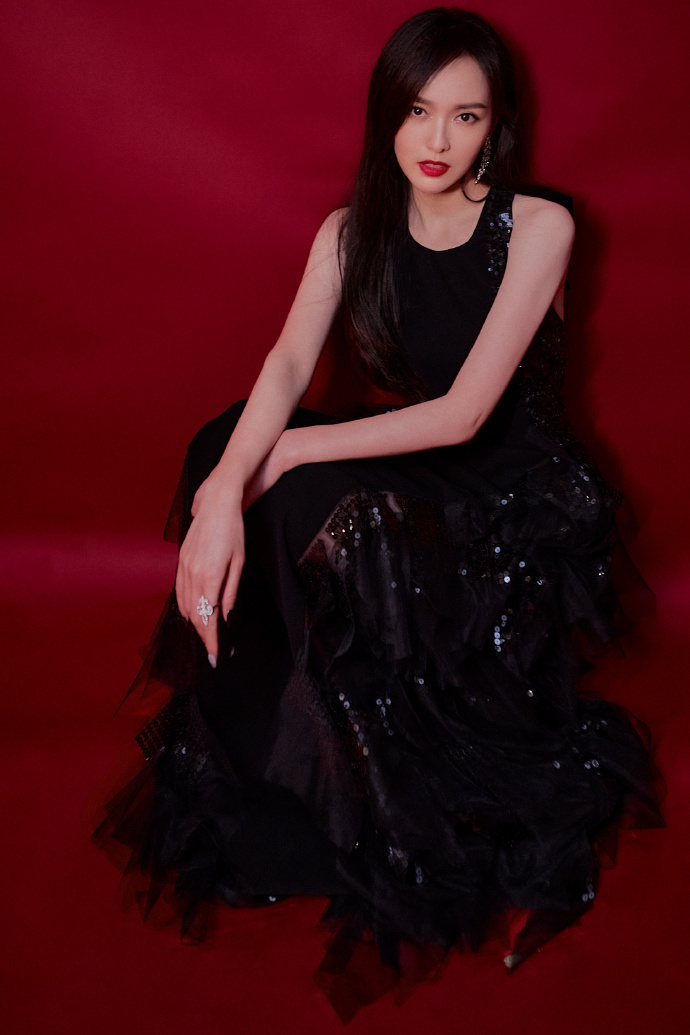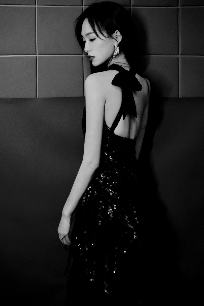 唐嫣暗黑长裙大秀美背高清写真