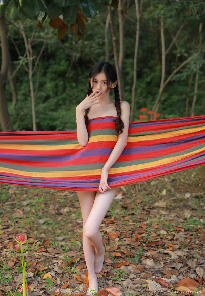 甜美可爱的麻花辫女生吊带短裤户外写真图片