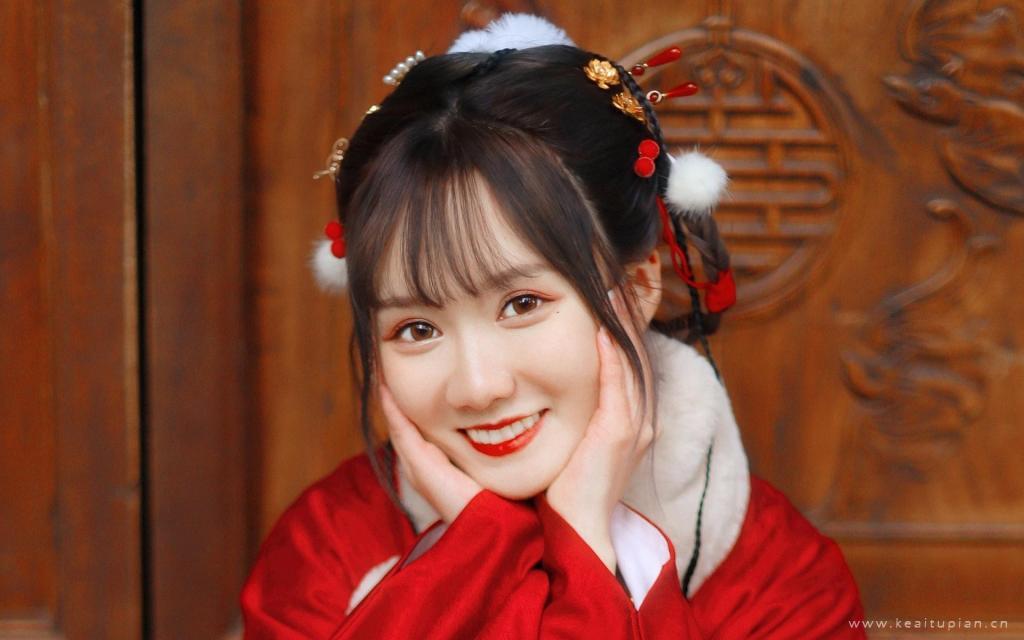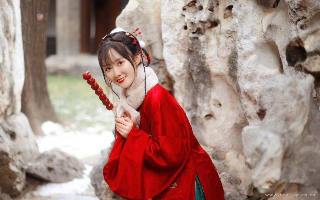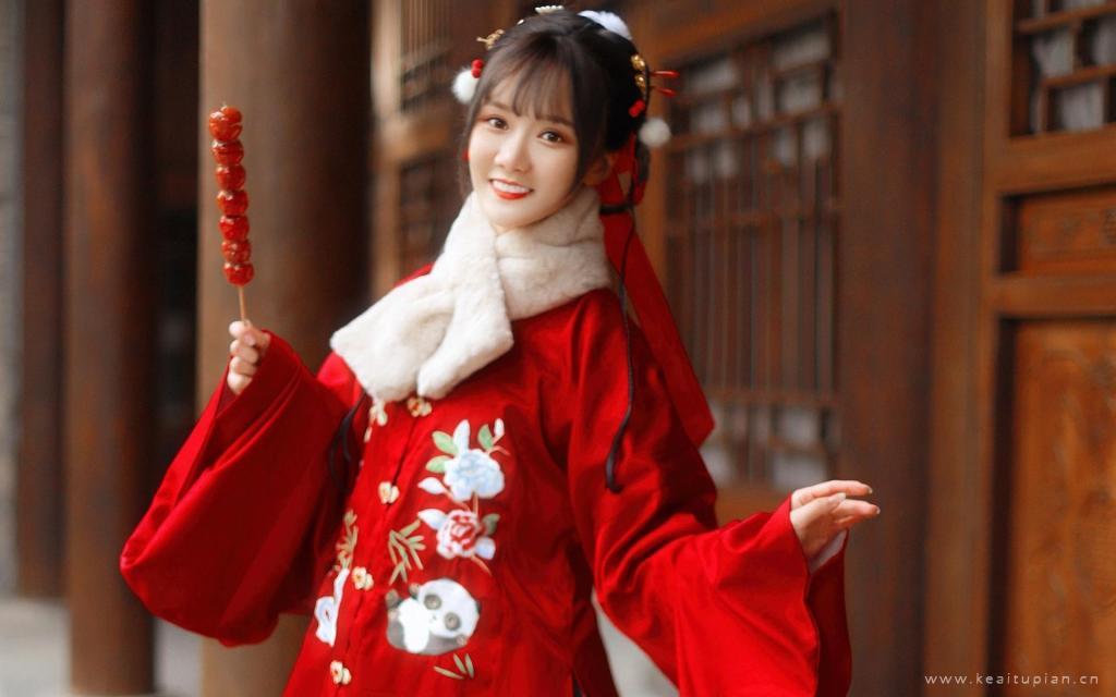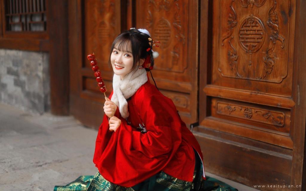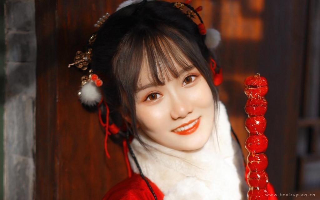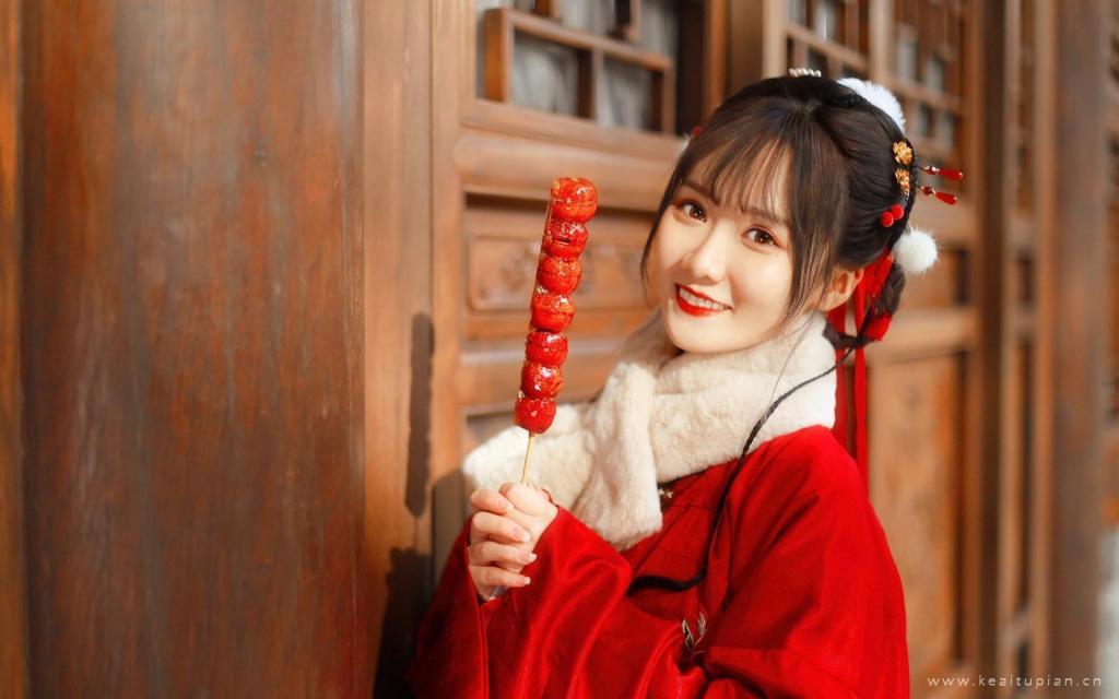 拿着一串糖葫芦笑容灿烂的古风美女古典写真图片