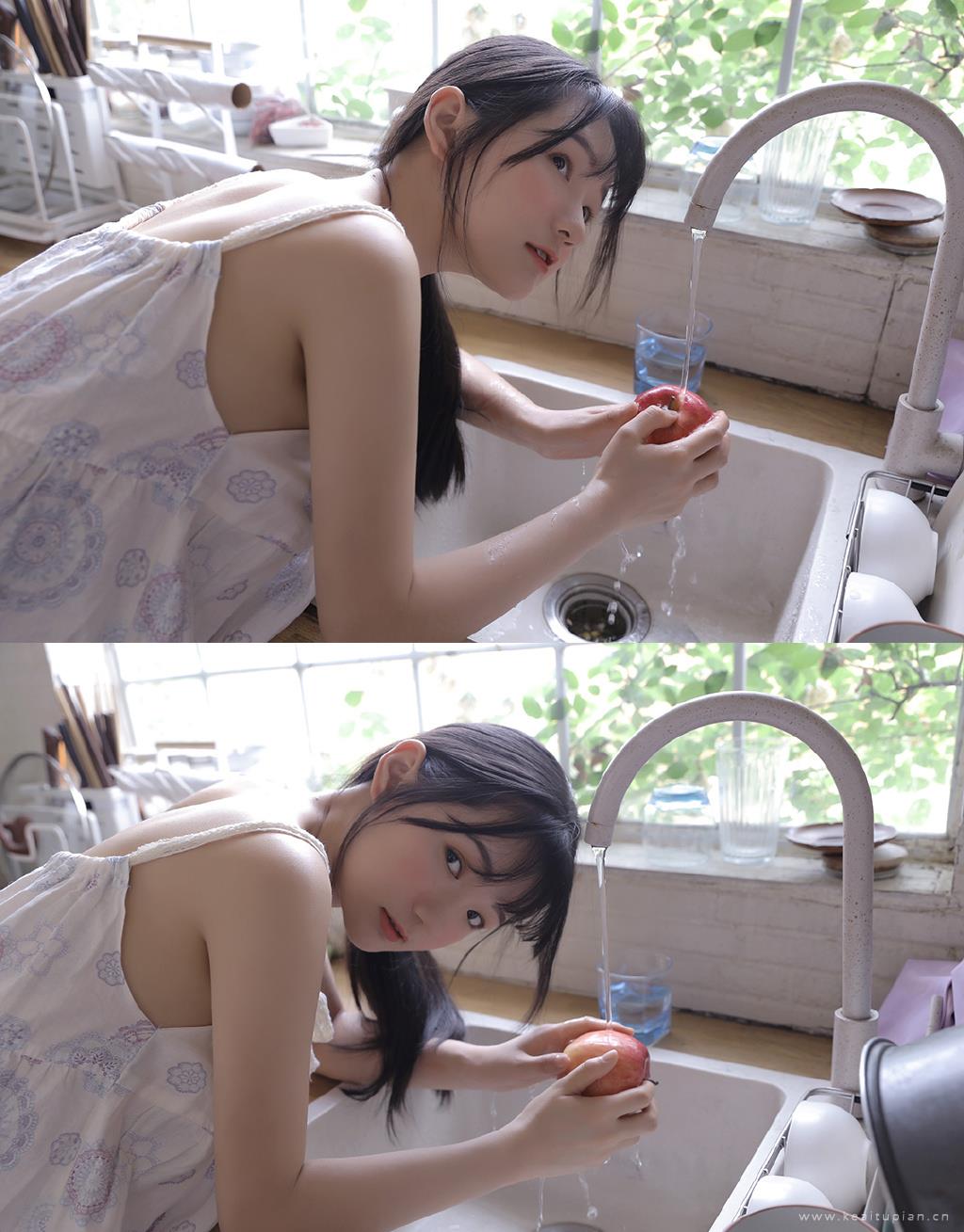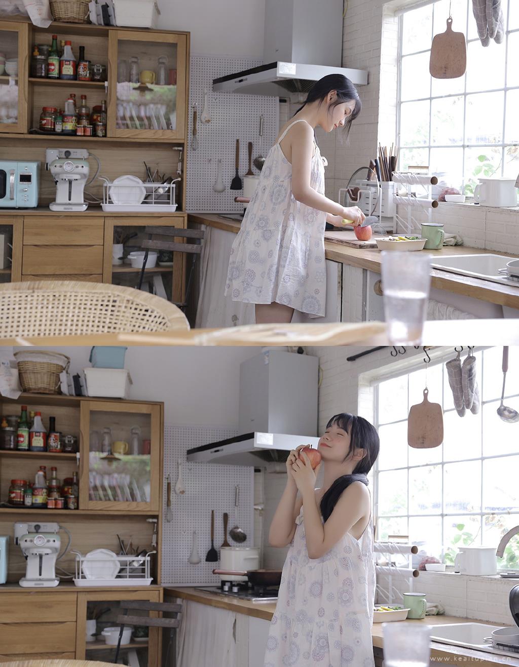 厨房美女吊带睡裙悠悠夏日性感写真图片大全