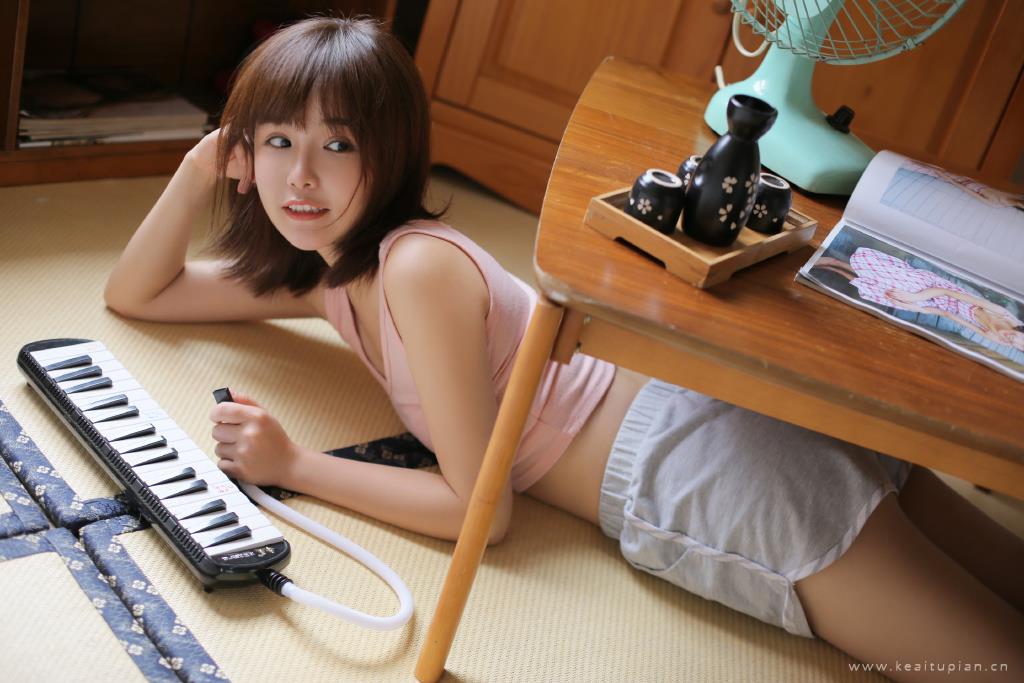 超美长腿美女模特居家电子琴文艺性感美女图片大全