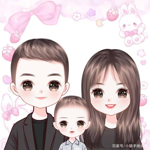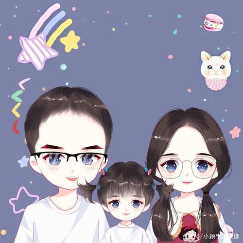 简单的幸福,一家三口,四口微信头像,动漫风格