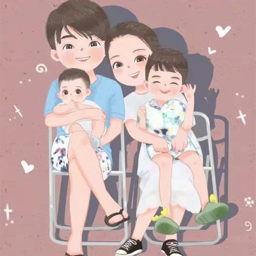 一家三口,四口,父子母女手绘微信头像,唯美温馨头像