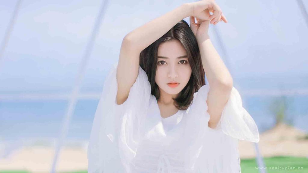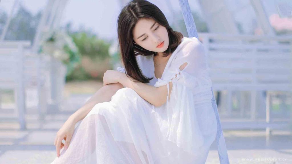 精选元气少女白色长裙清新迷人写真图片桌面壁纸