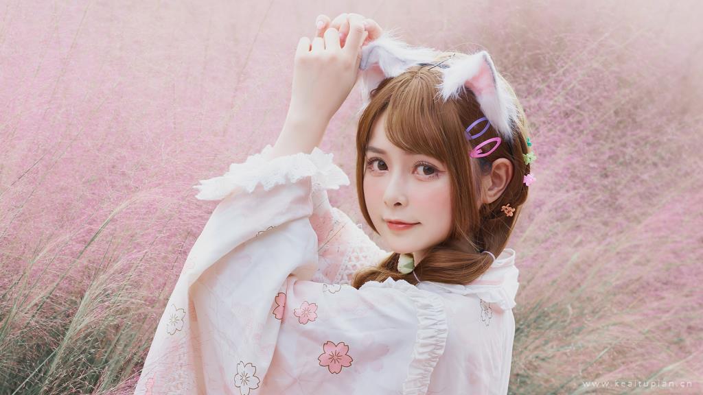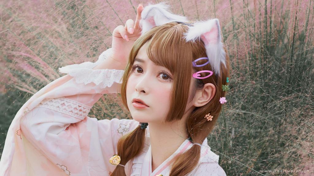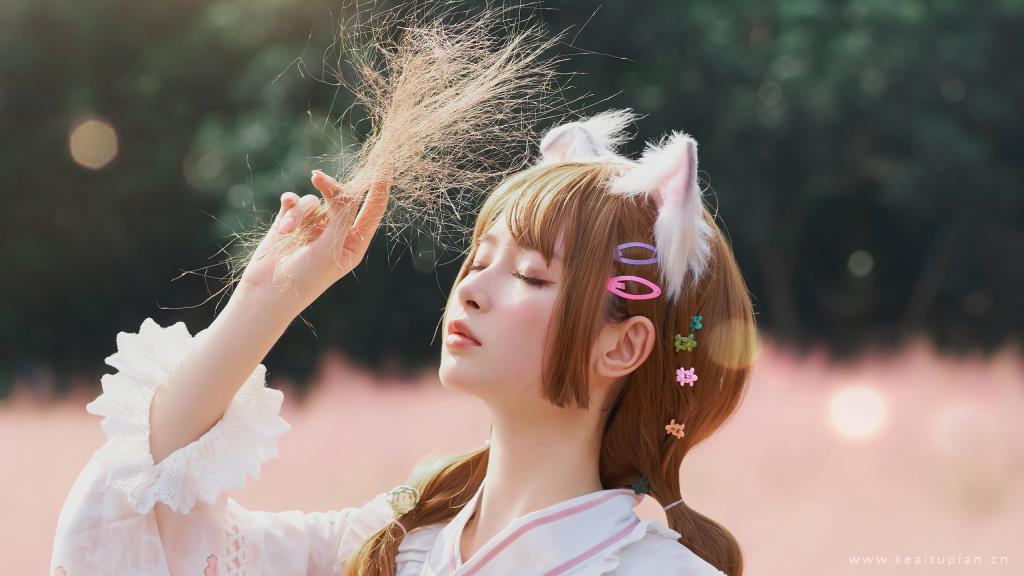 和风萌系猫耳粉嫩可爱少女写真图片桌面壁纸