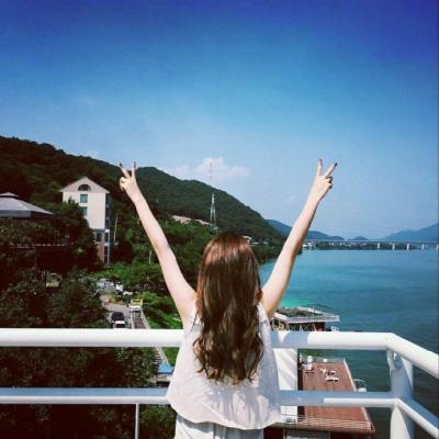 海边女生头像背影中发