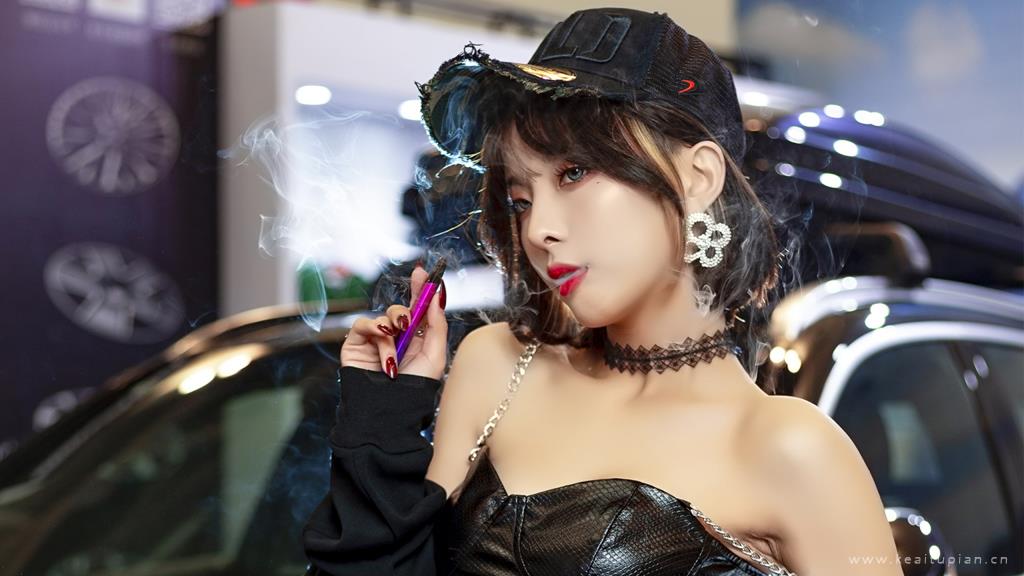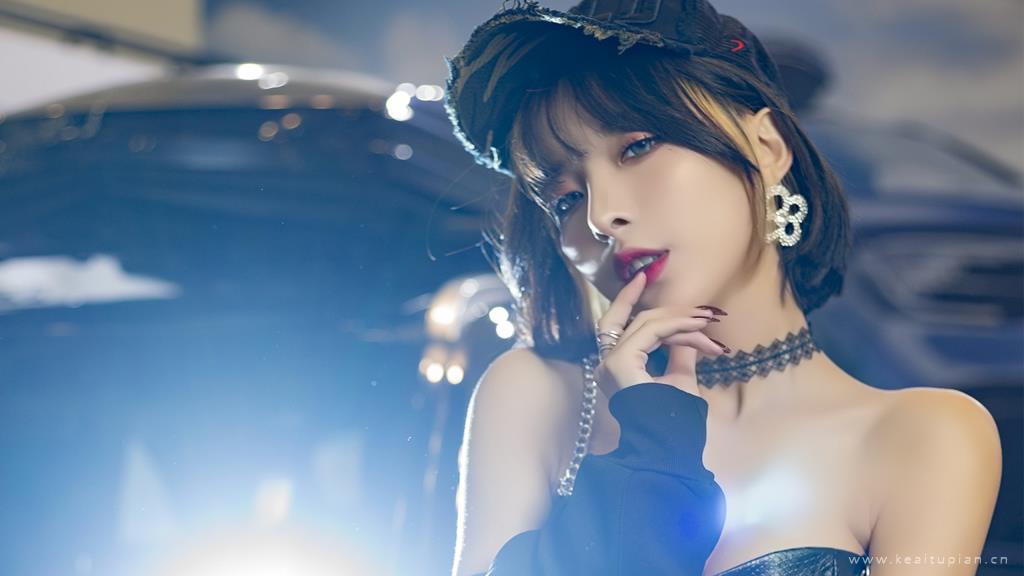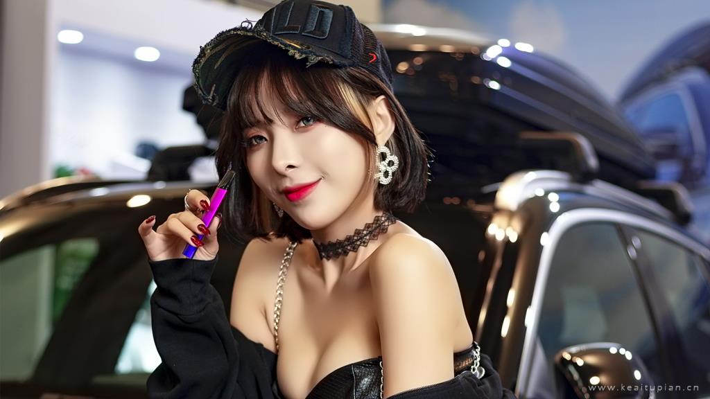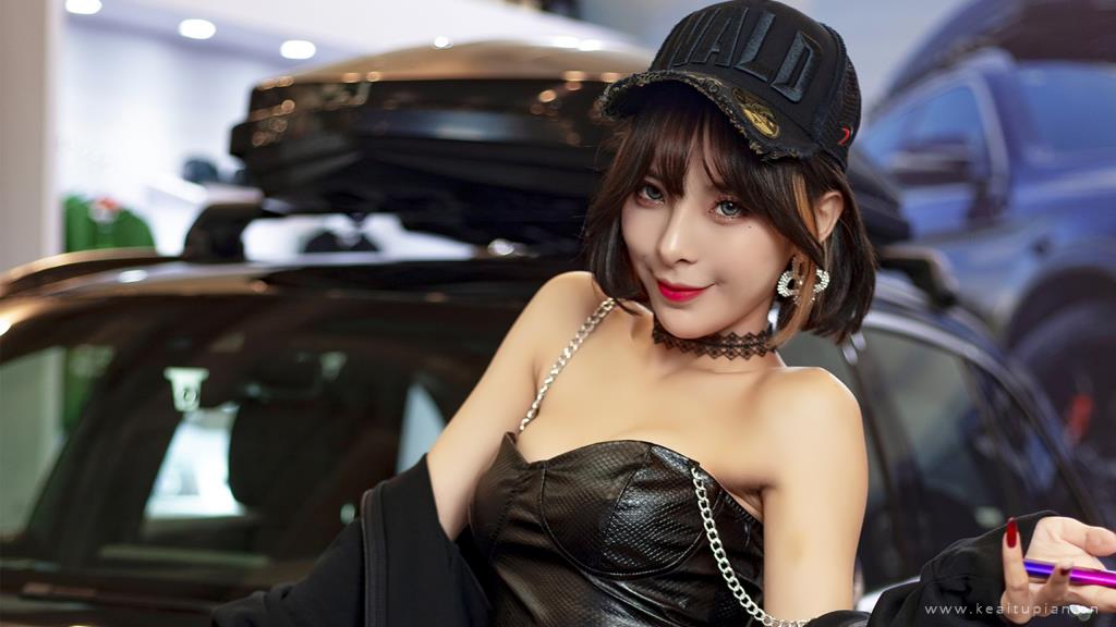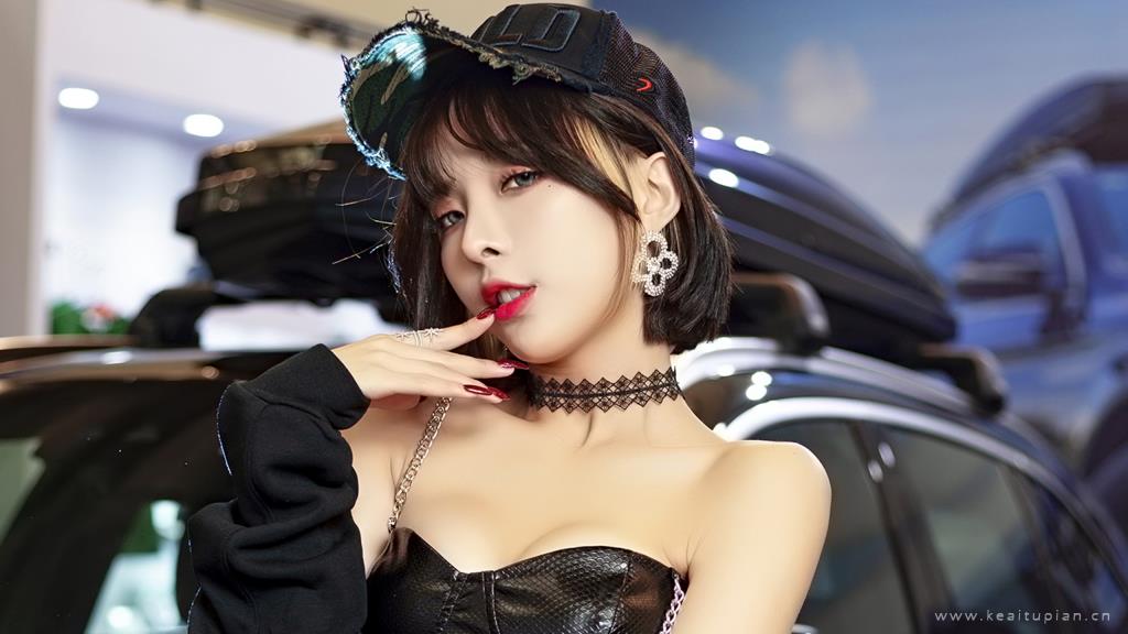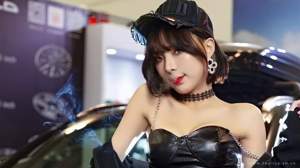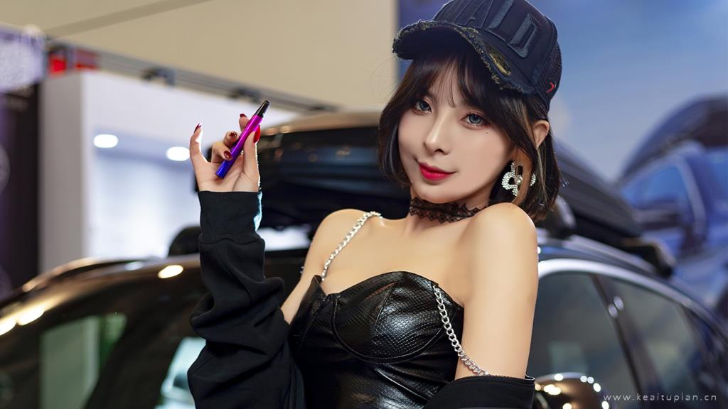 超性感吊带皮衣极品美女车模写真壁纸图片