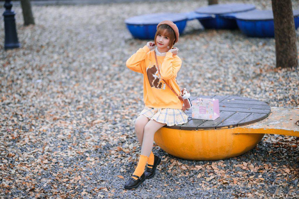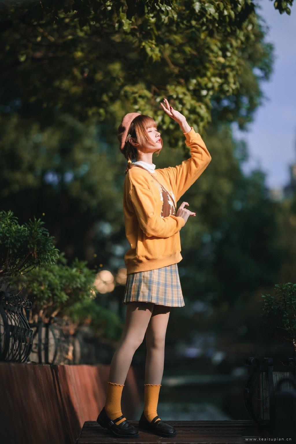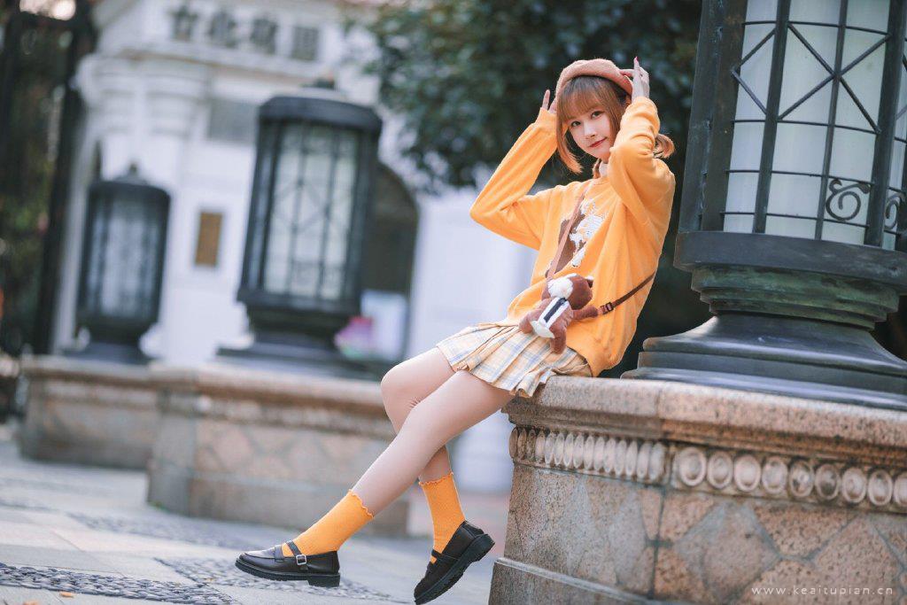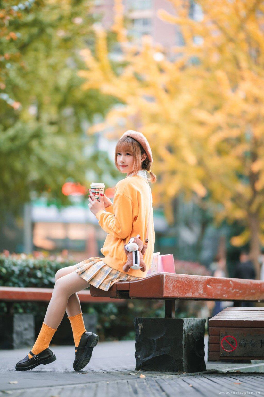 秋季养眼少女短裙可爱造型高清街拍写真图片