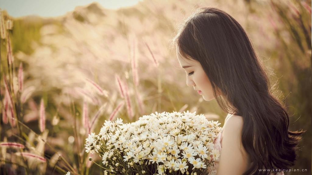 花与少女唯美小清新户外写真壁纸图片