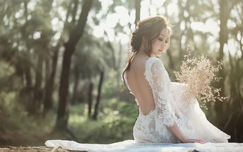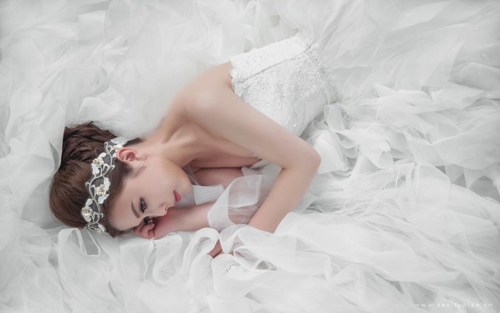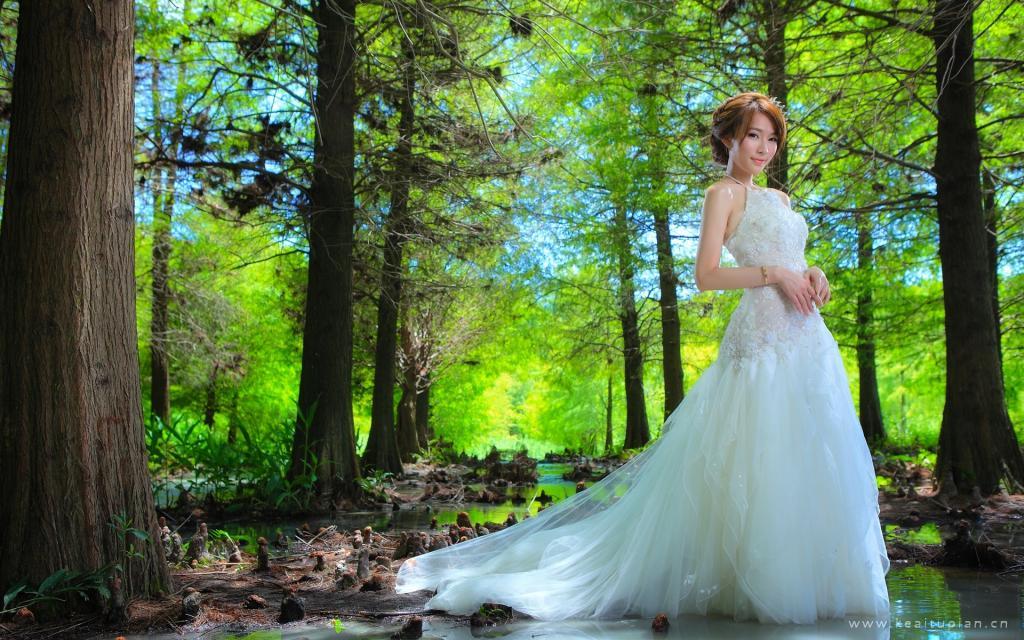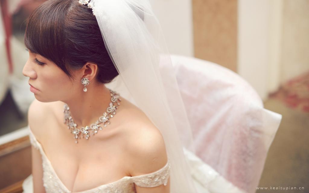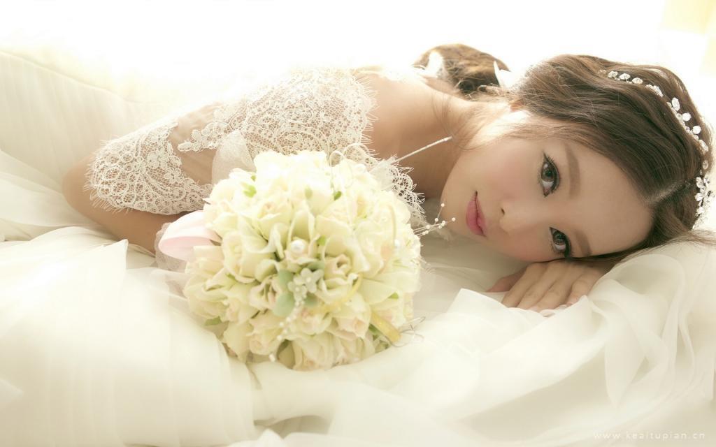 穿着白色婚纱嫁给爱情的美女新娘桌面壁纸图片