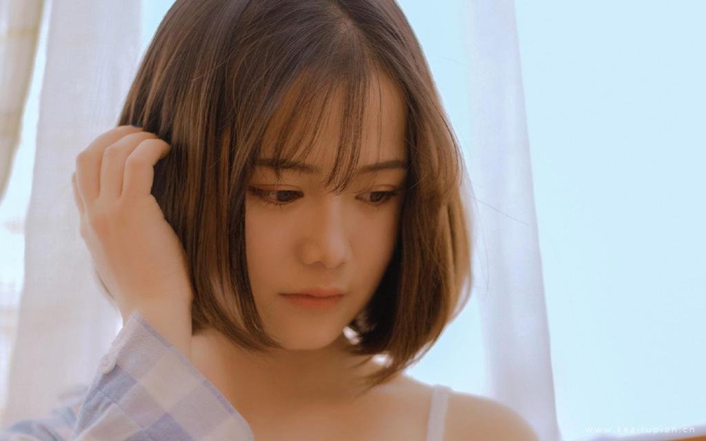 俏皮短发美女大眼灵动清纯居家写真图片