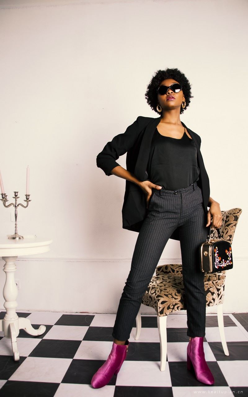 暗黑肤色美女包包服装街拍高清图片手机壁纸