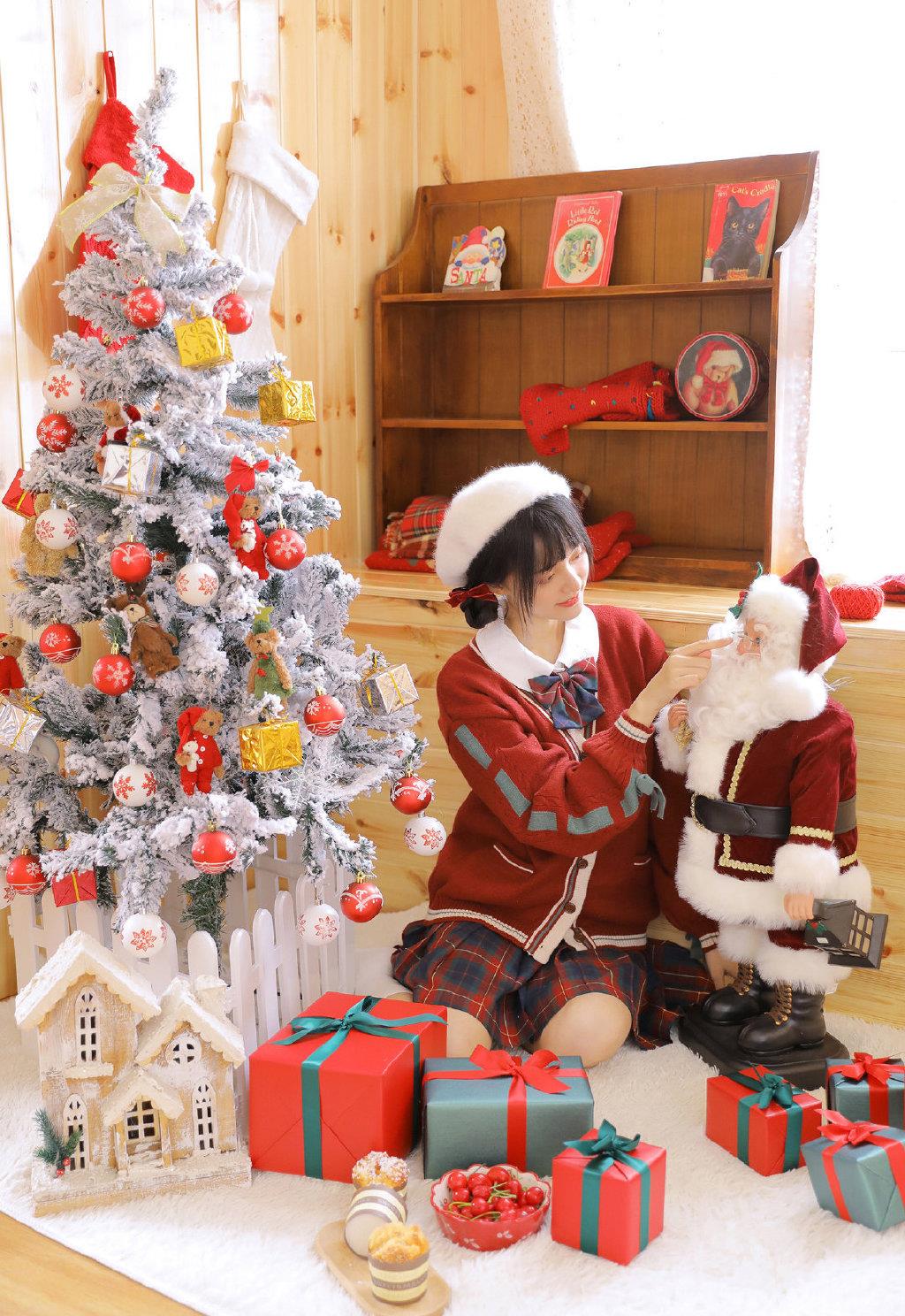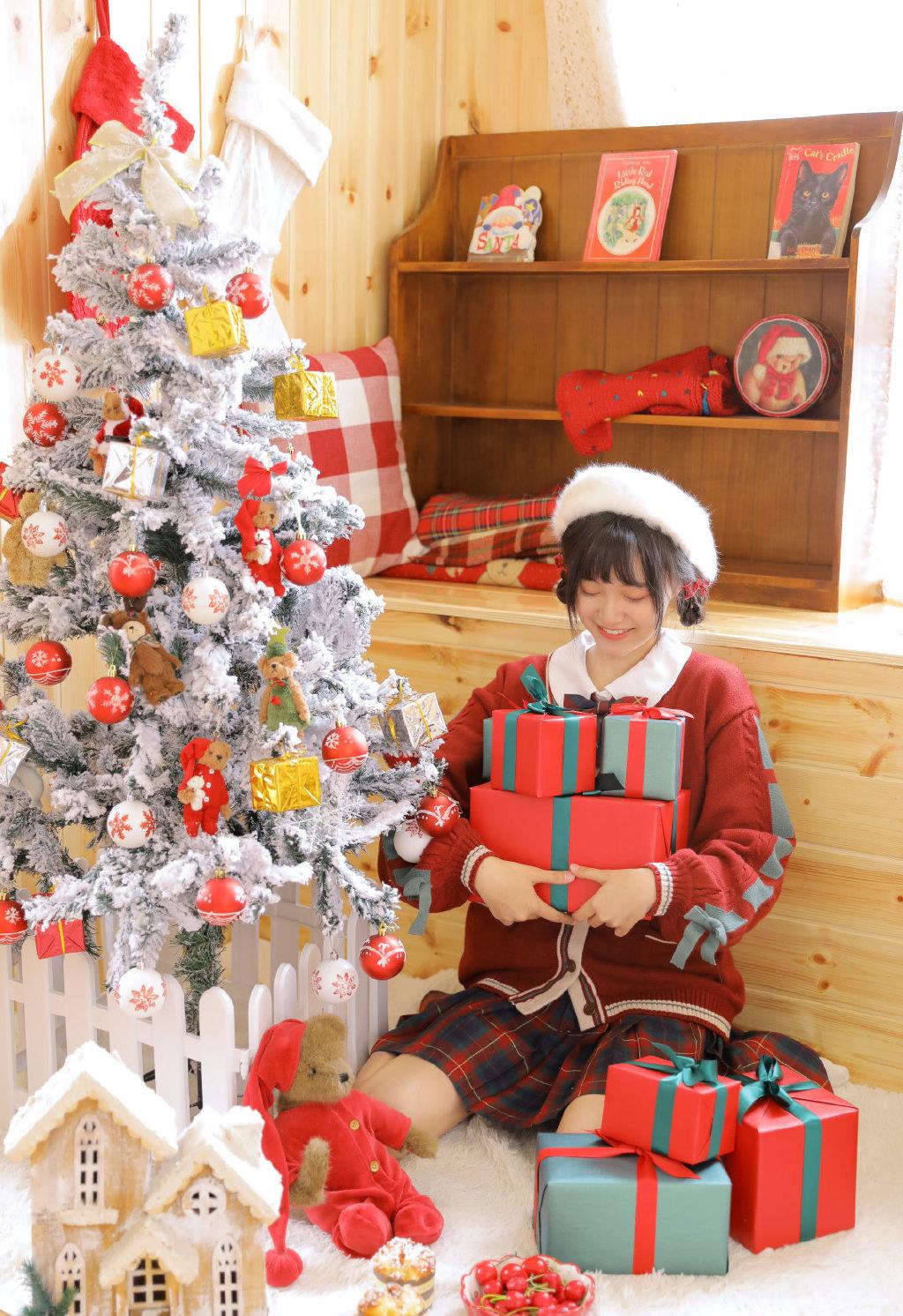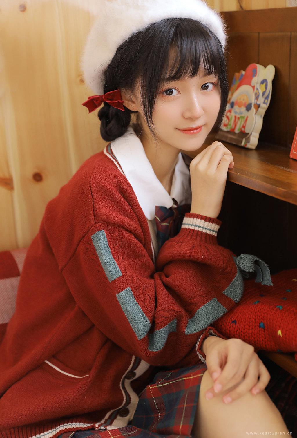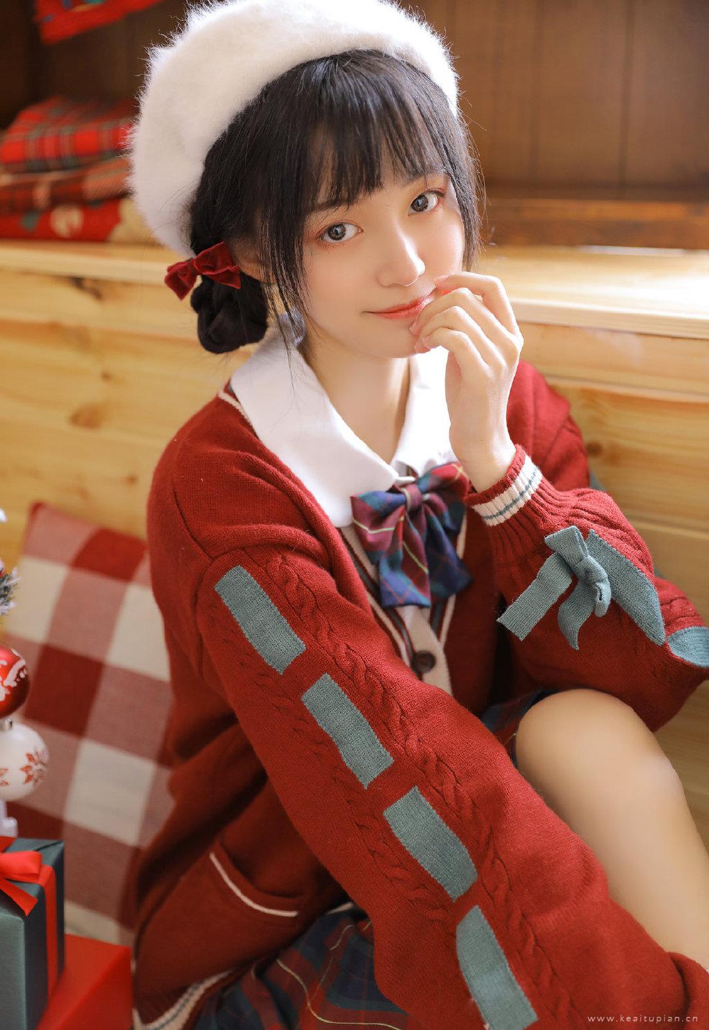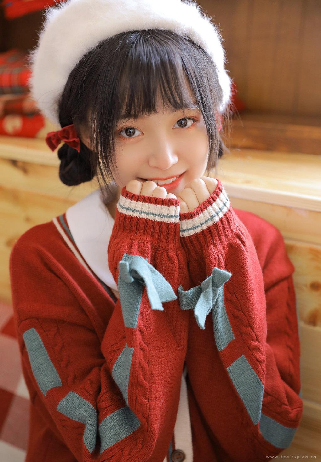 甜美可爱美女红色毛衣温暖居家过圣诞主题写真图片大全