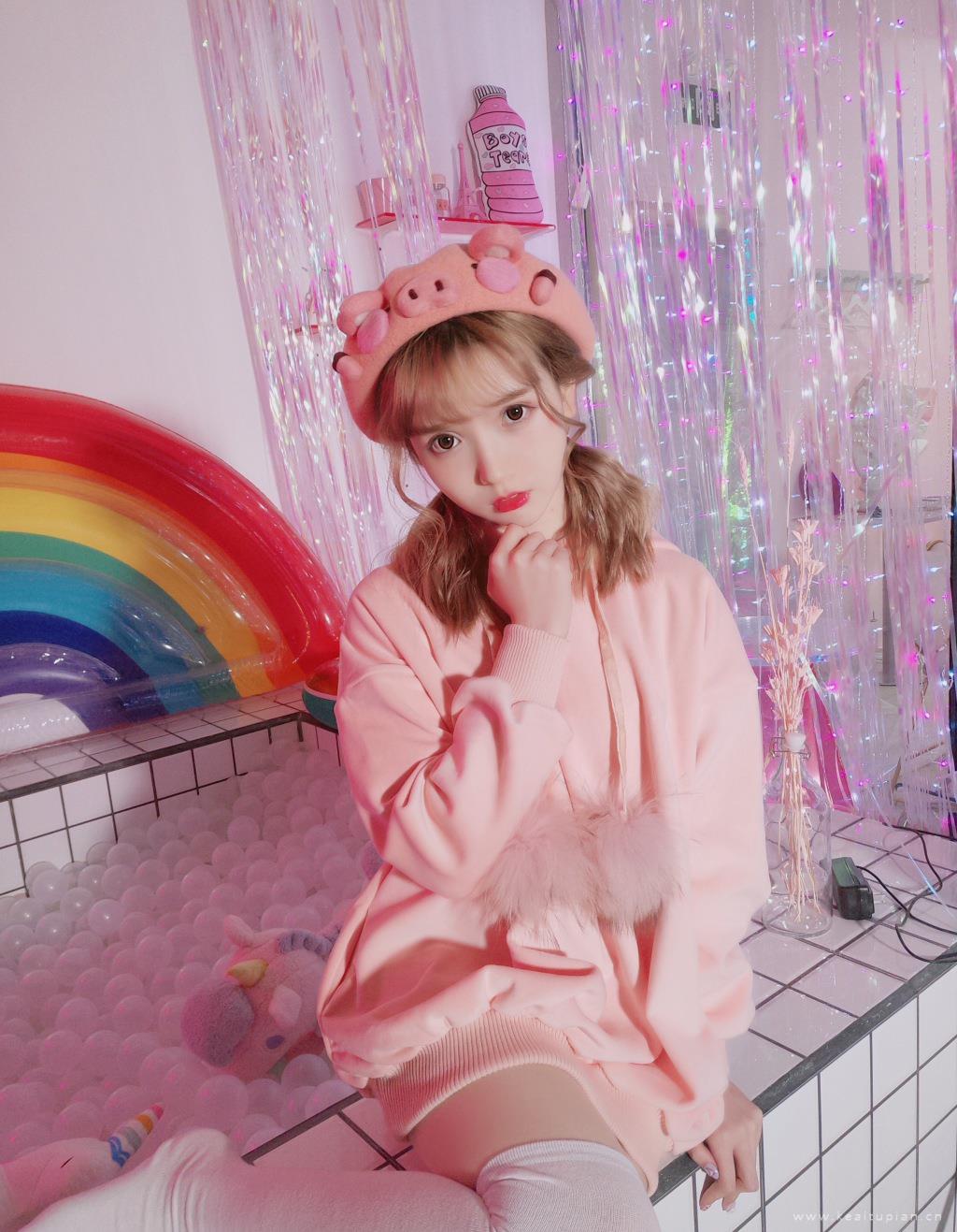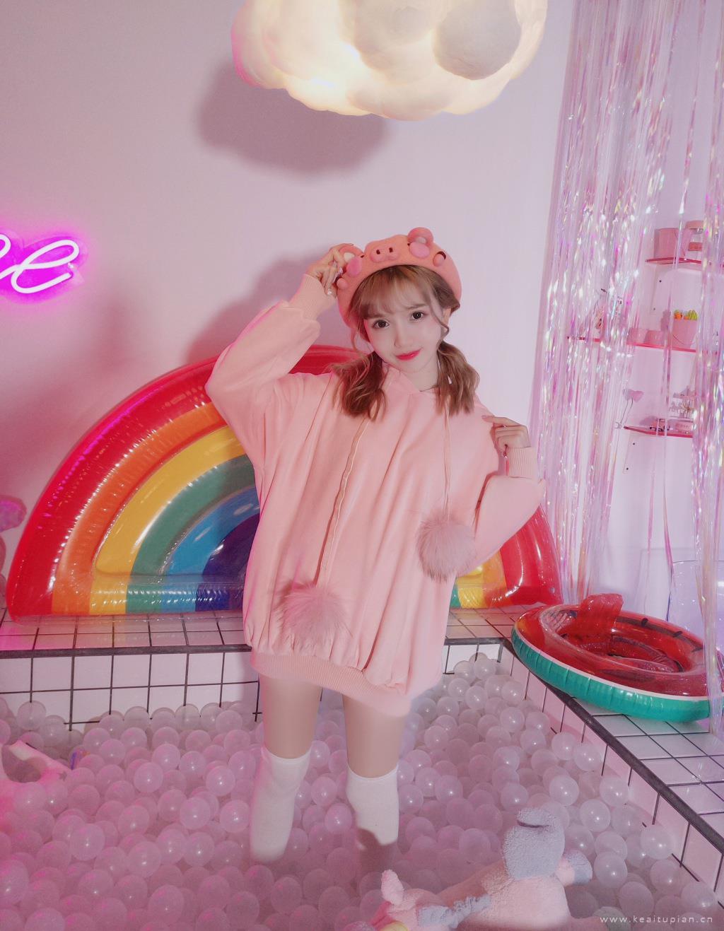 可爱粉色系少女双马尾娃娃脸女孩写真高清壁纸图