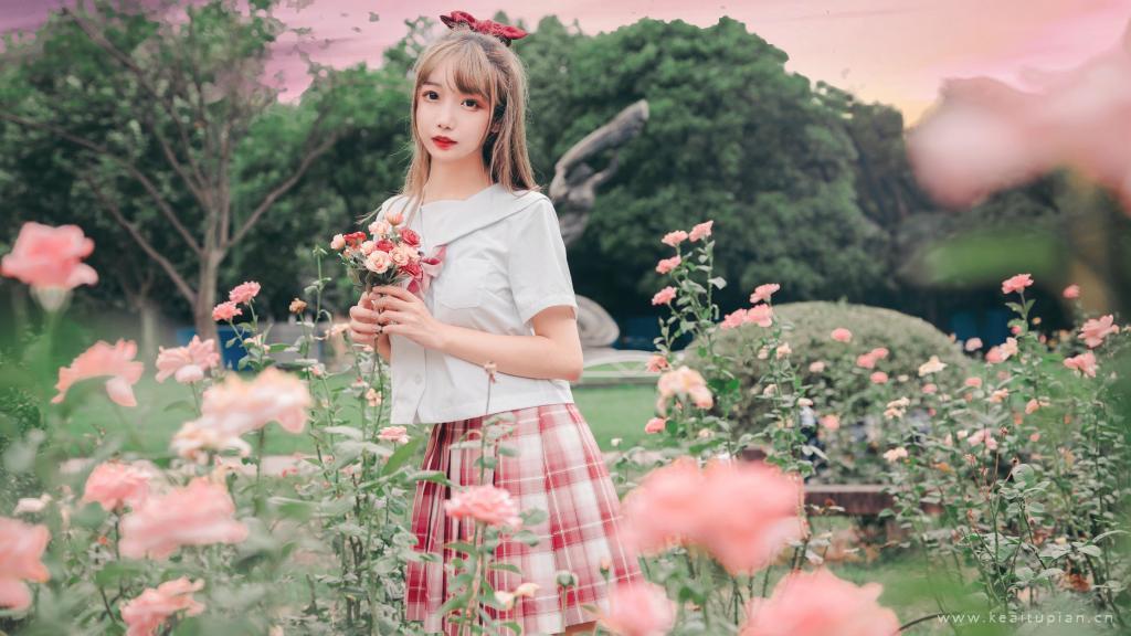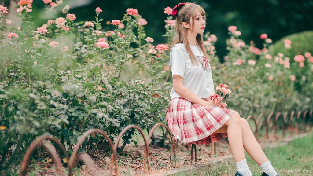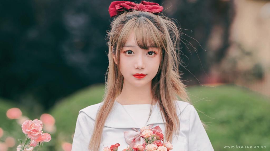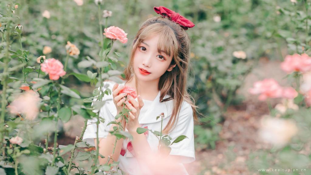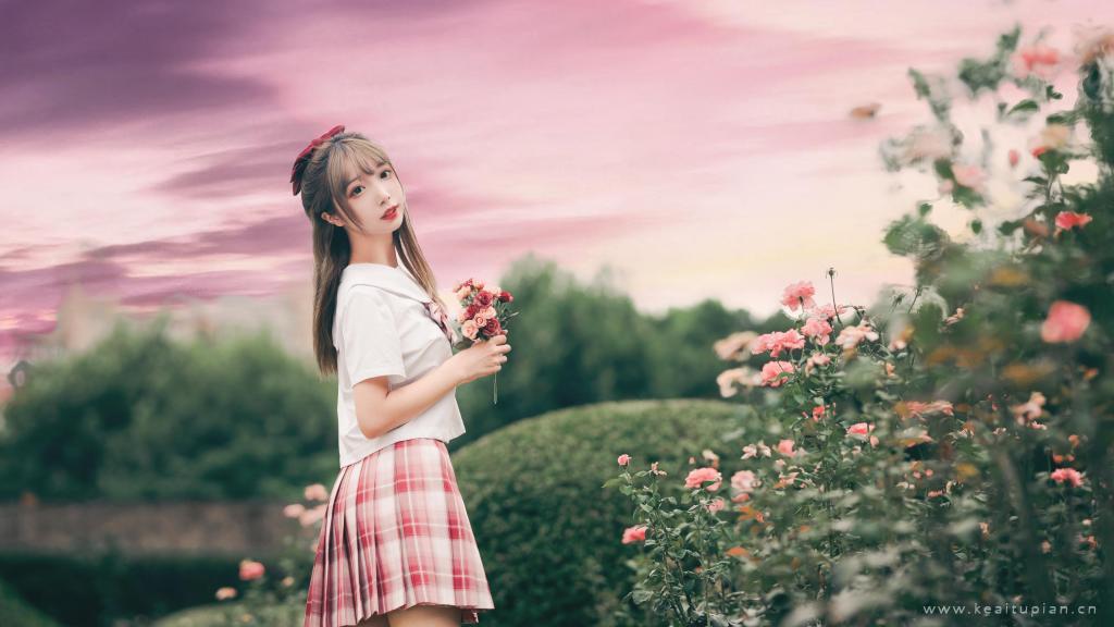 甜美可爱少女和服梦幻户外写真高清壁纸图