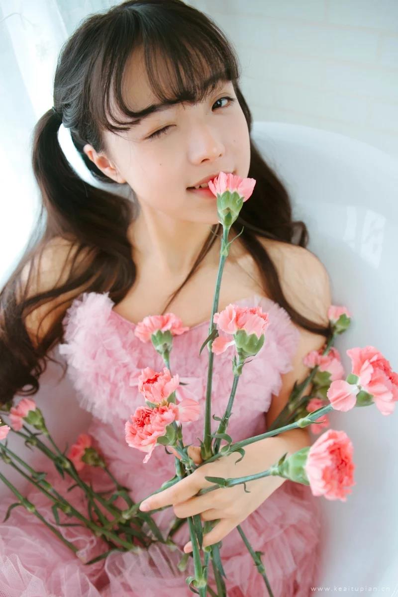 性感美女粉色纱裙浴缸诱人写真高清壁纸