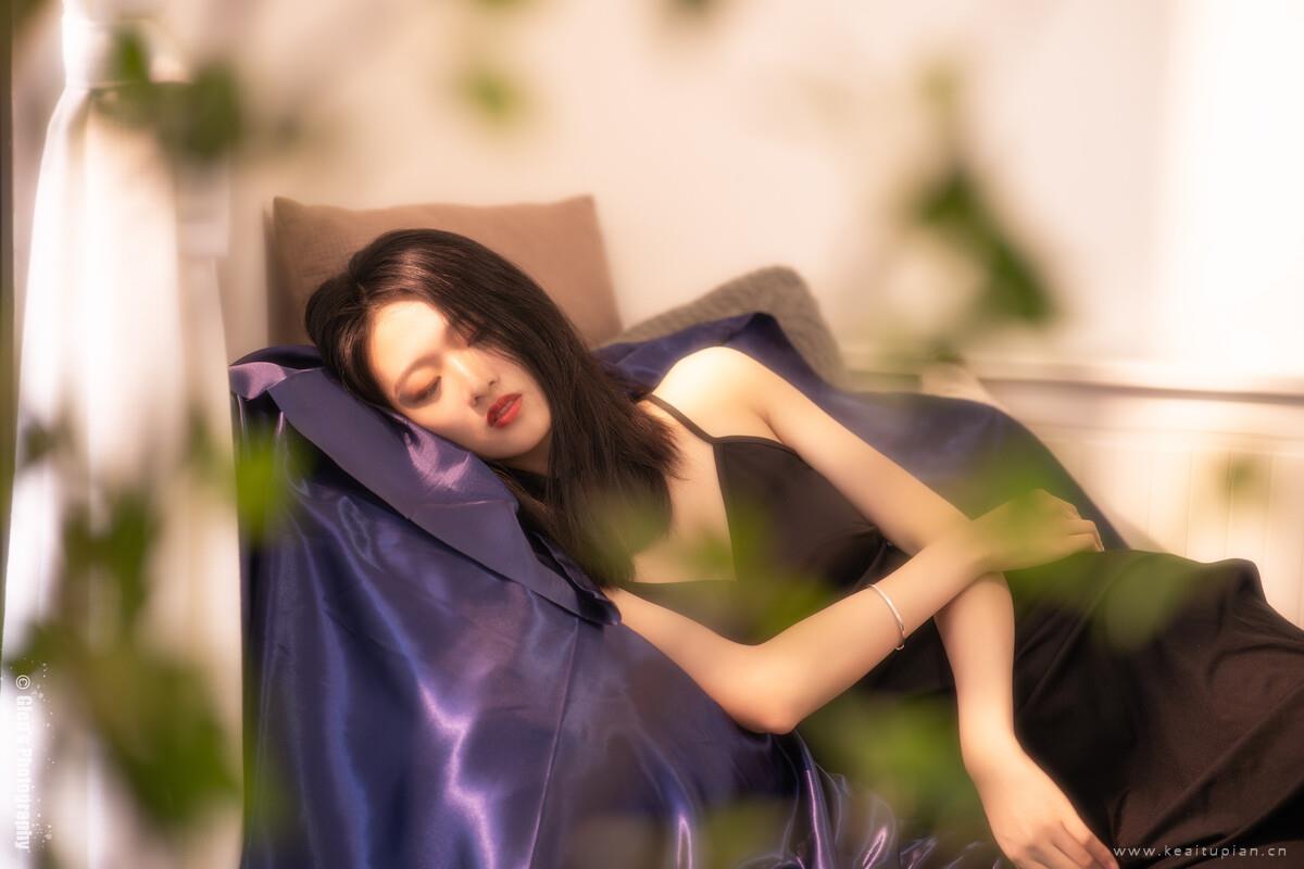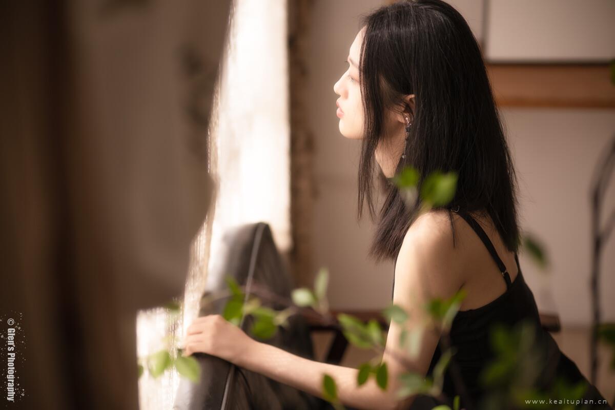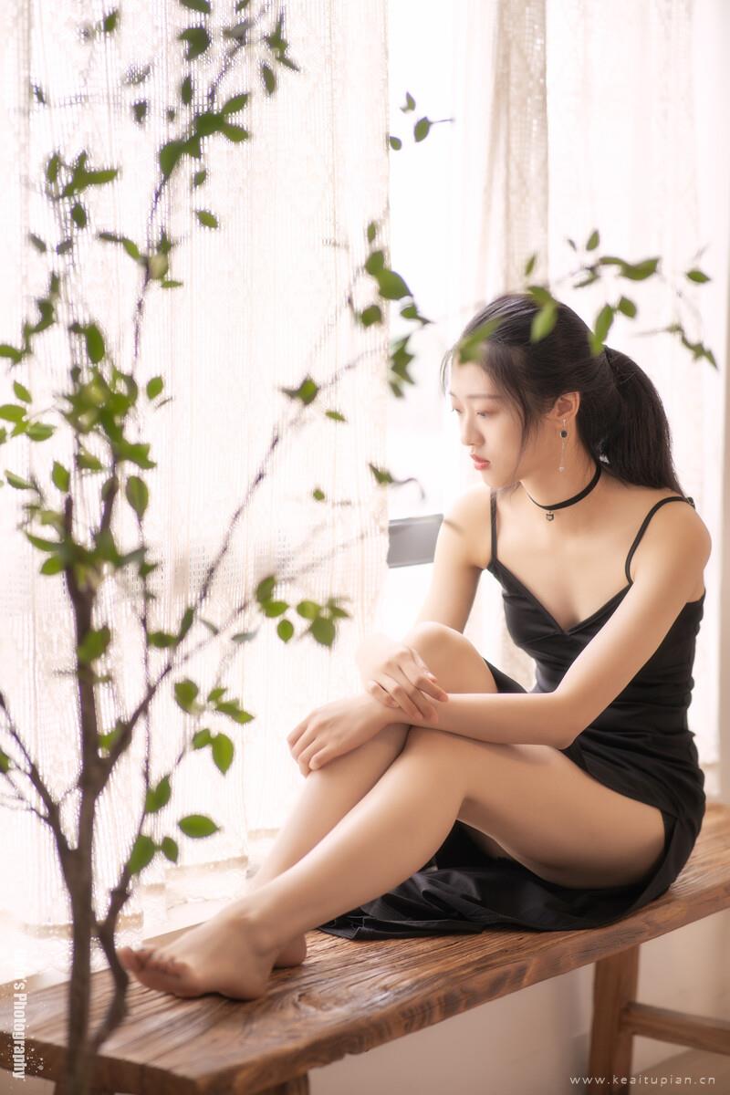 性感少女深V黑色吊带裙诱人身姿私房写真