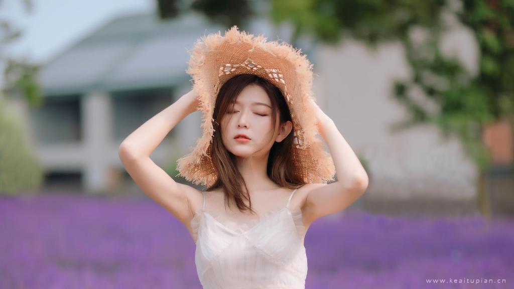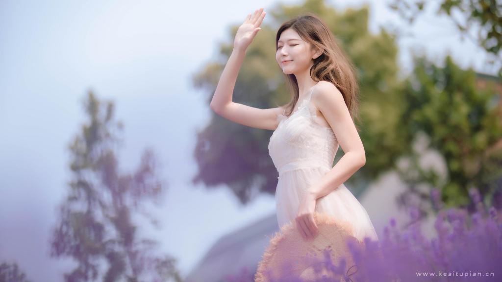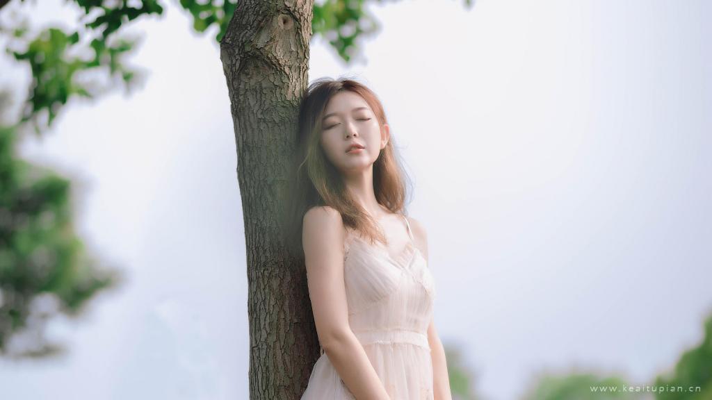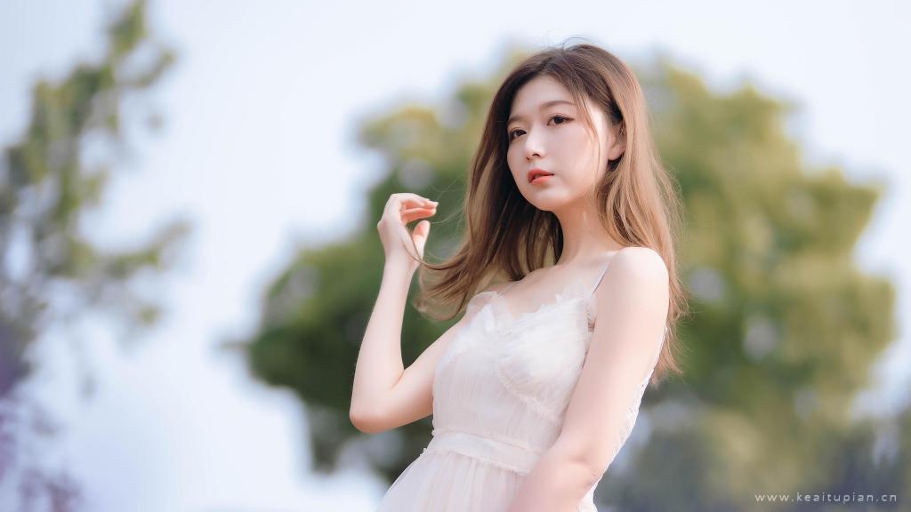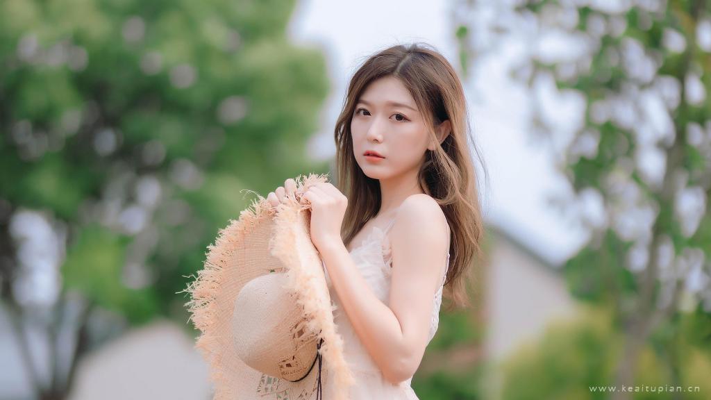 长发清纯甜美可爱少女唯美户外风景写真高清电脑壁纸图