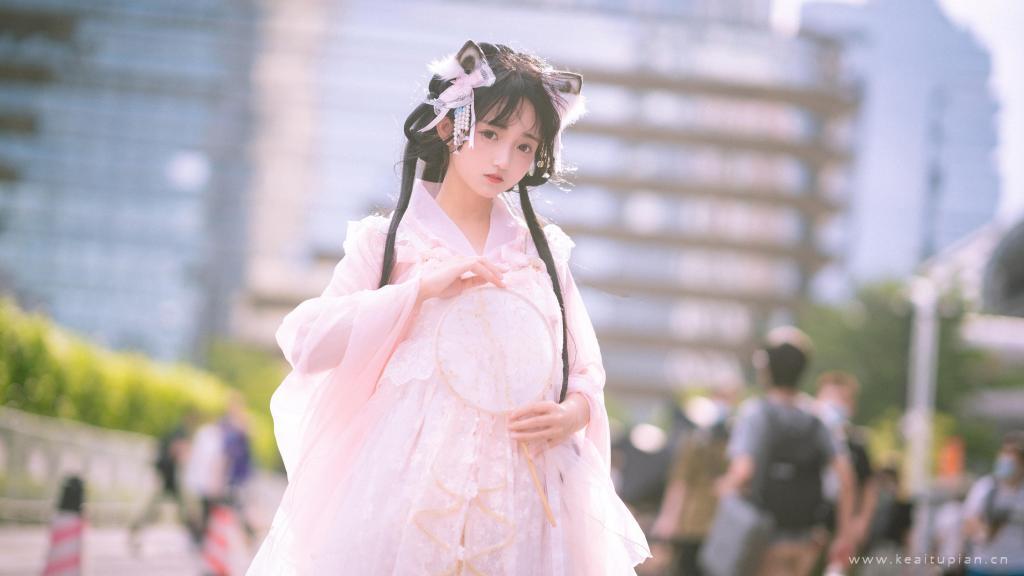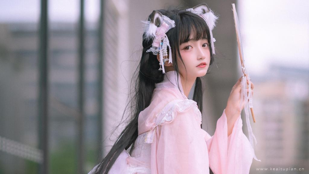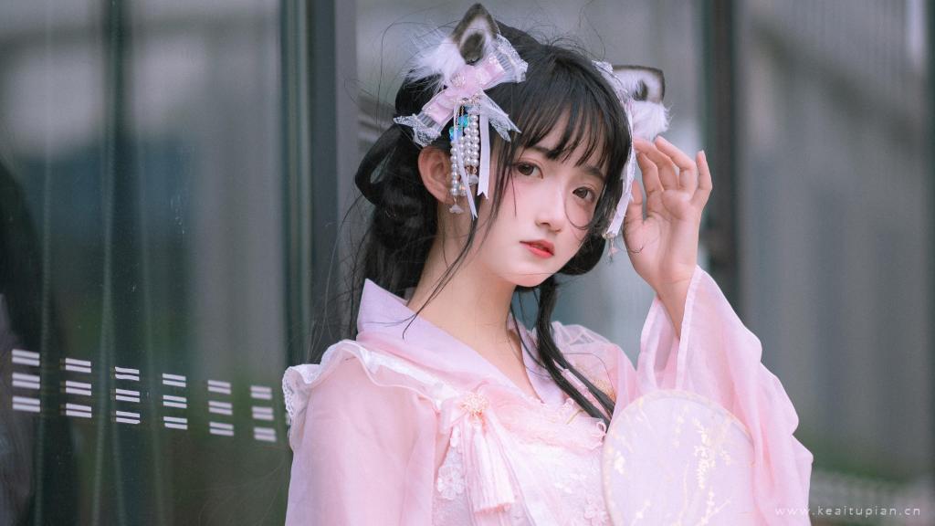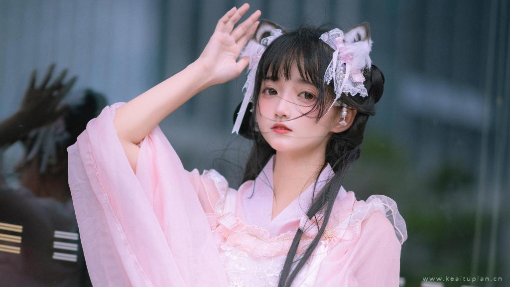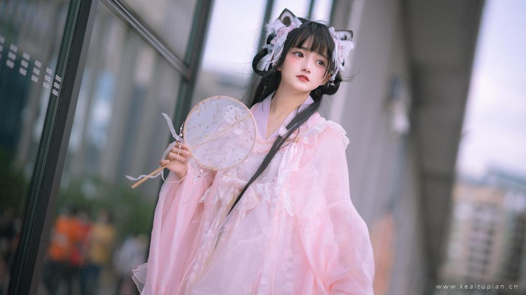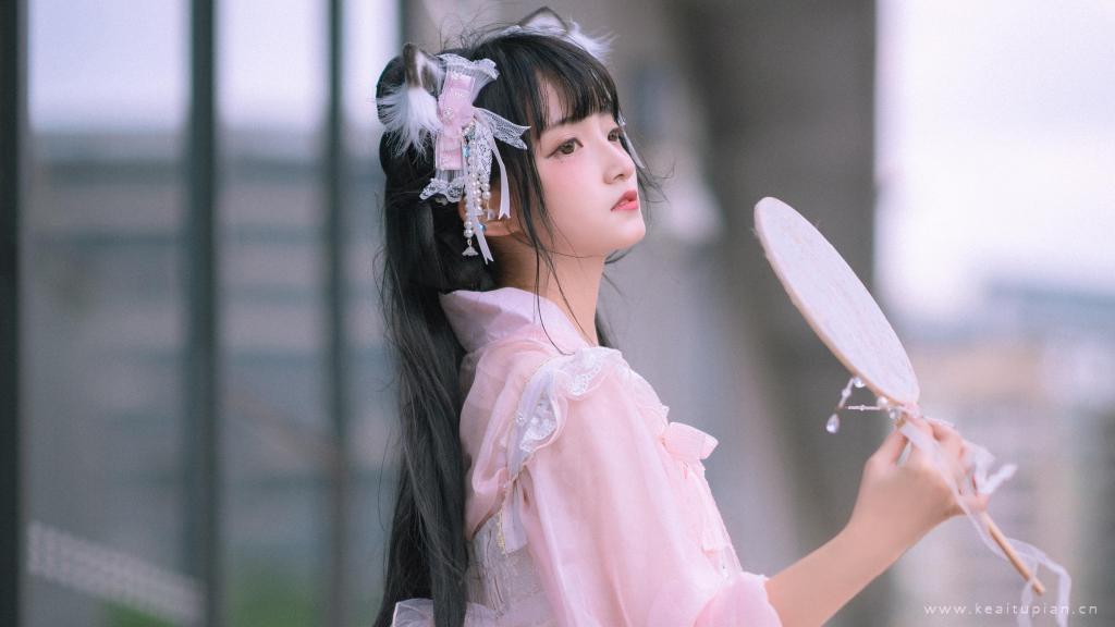 粉色吊带裙气质美女性感露肩居家写真图片桌面壁纸