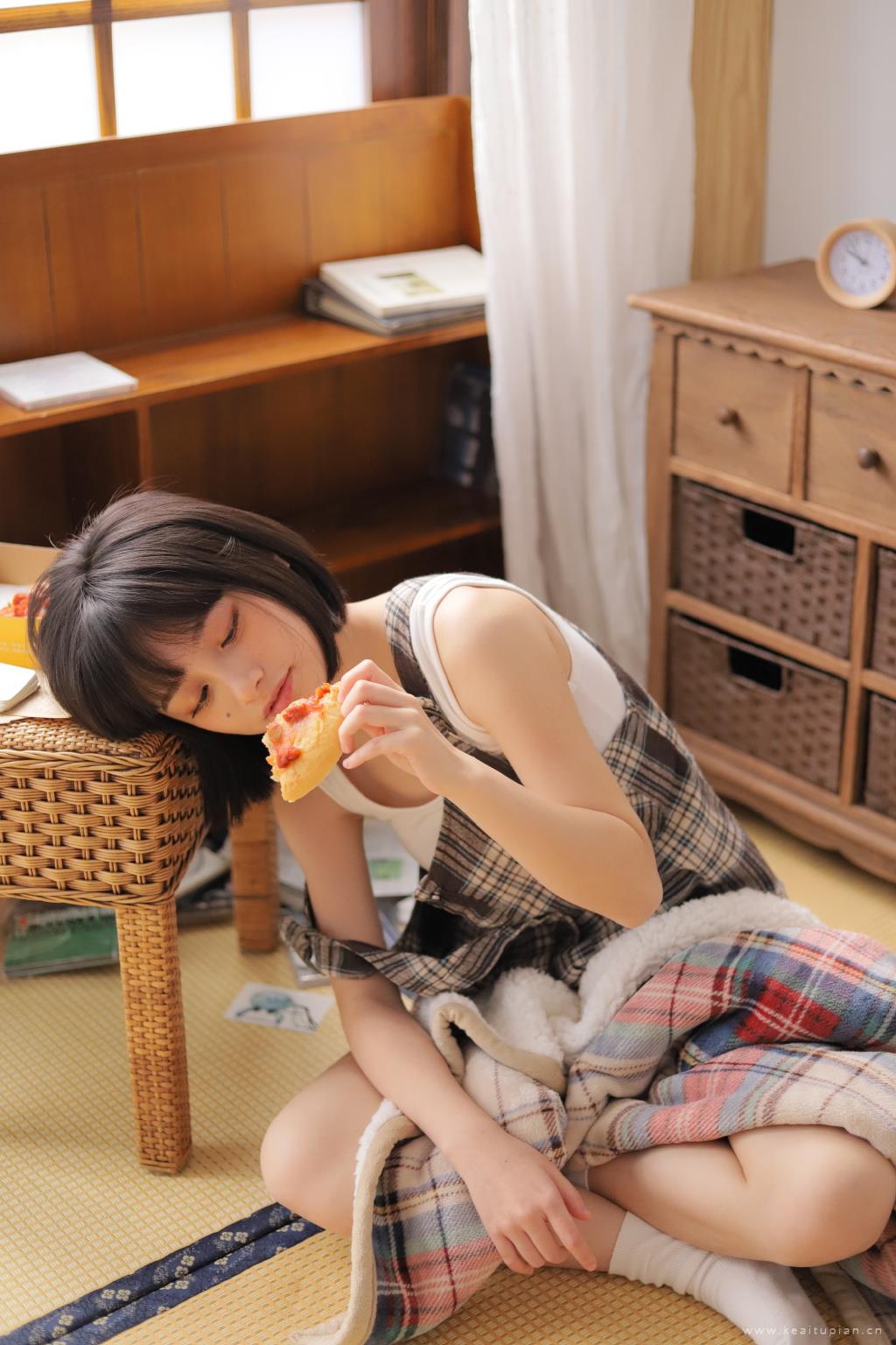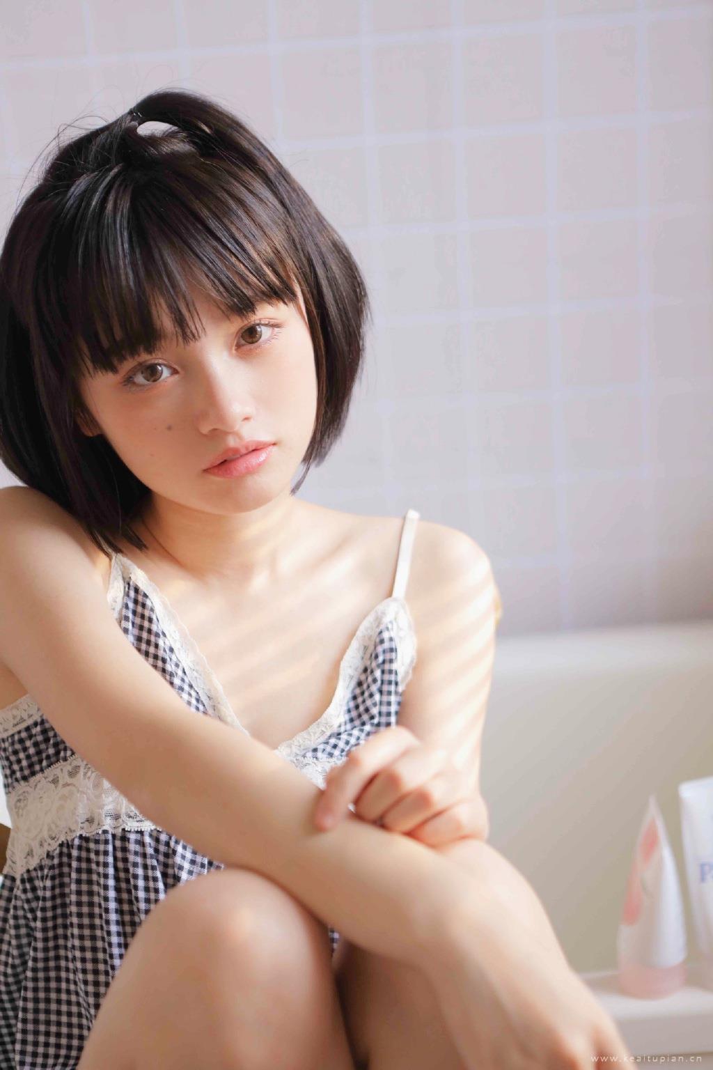 清爽短发青春美女性感衬衫居家甜美写真图片桌面壁纸