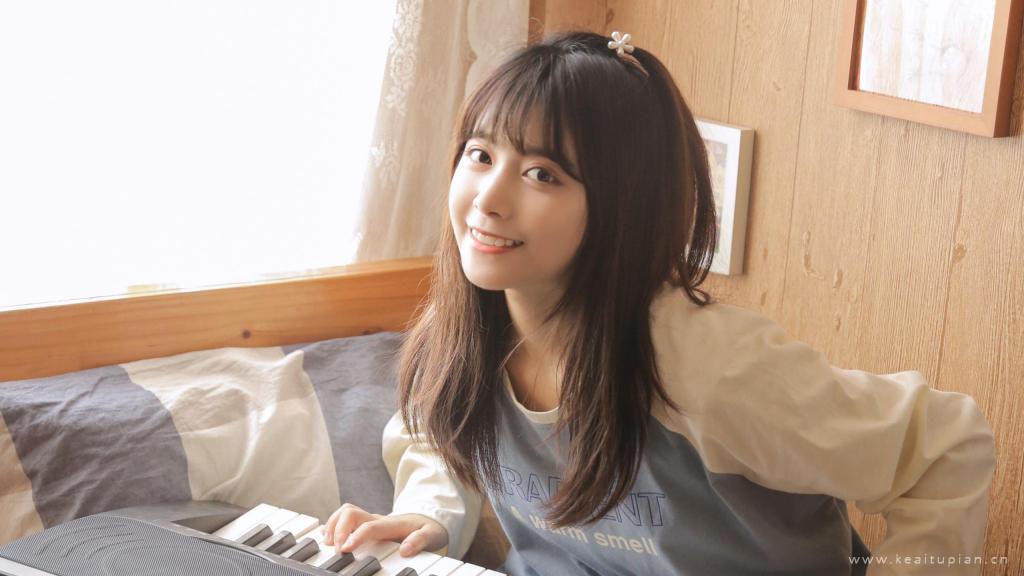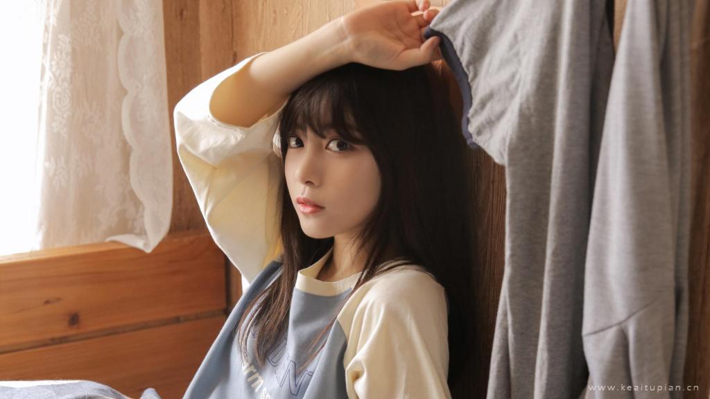 吊带裙睡衣美女性感露肩甜美少女写真高清壁纸图