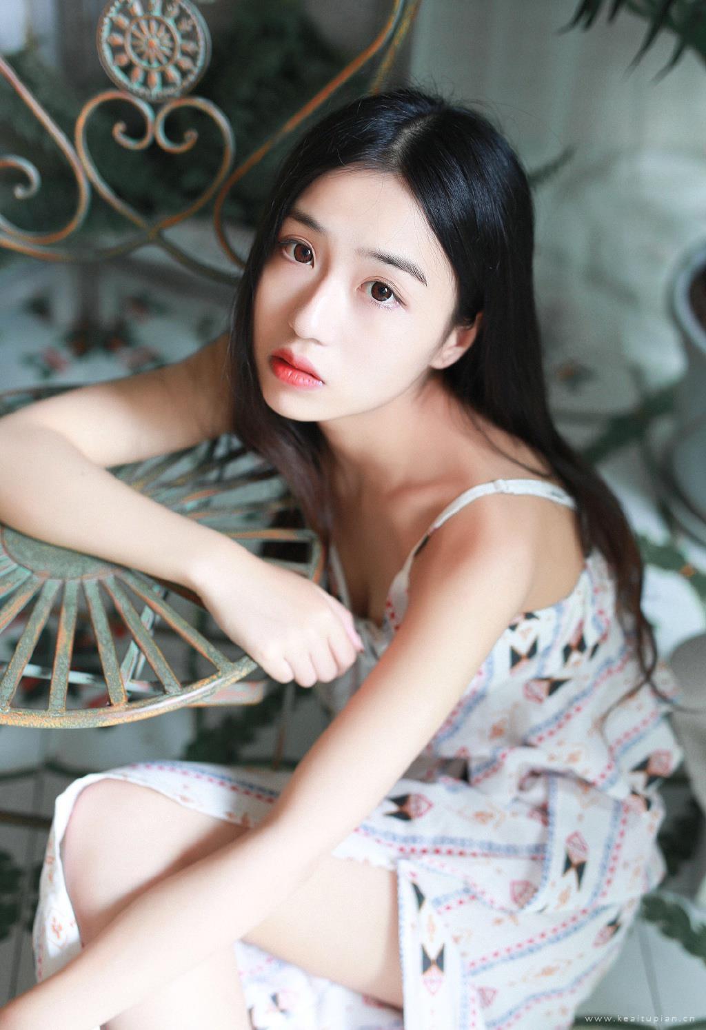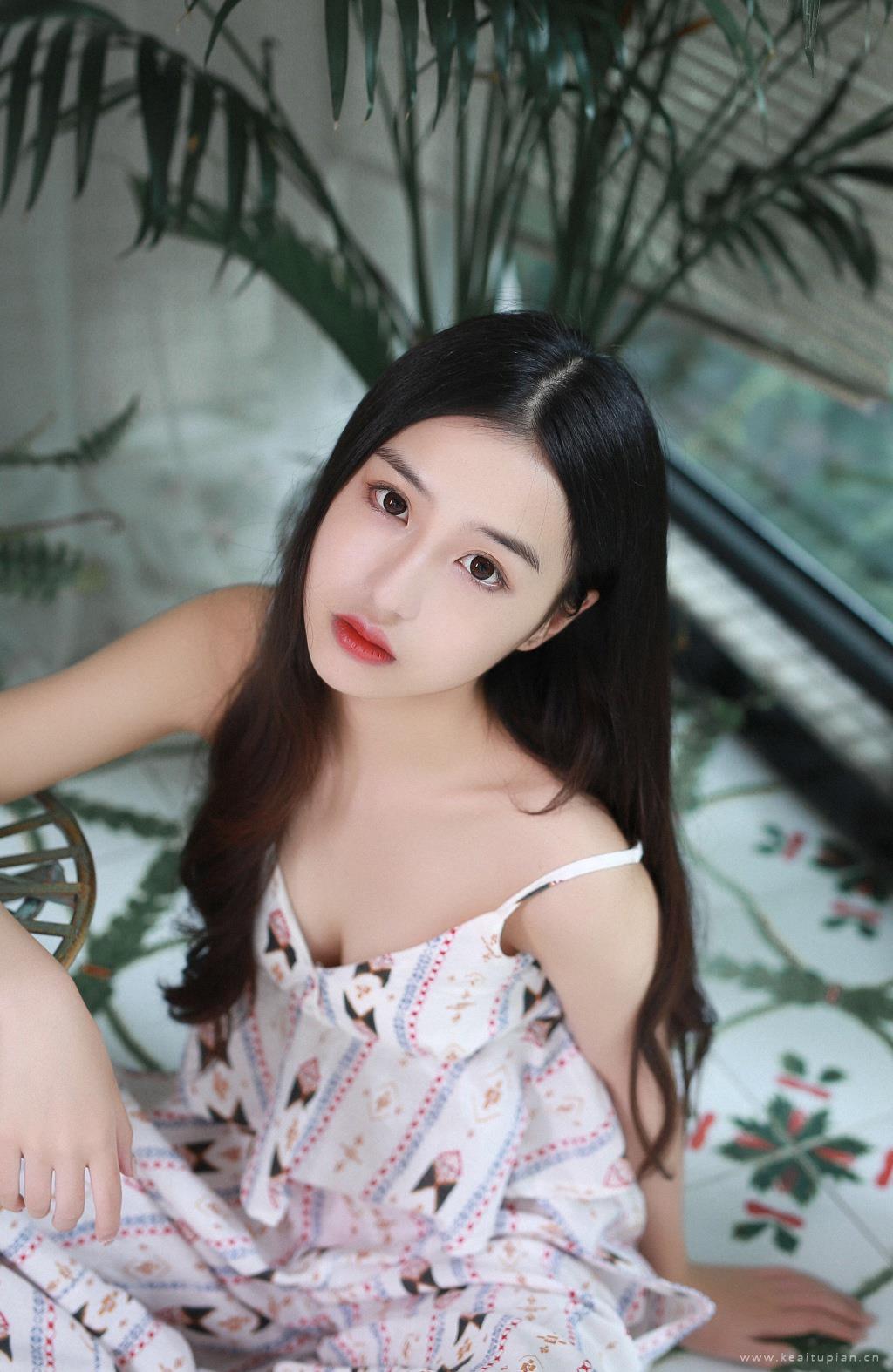 性感少女深V碎花吊带裙私房唯美壁纸图片写真