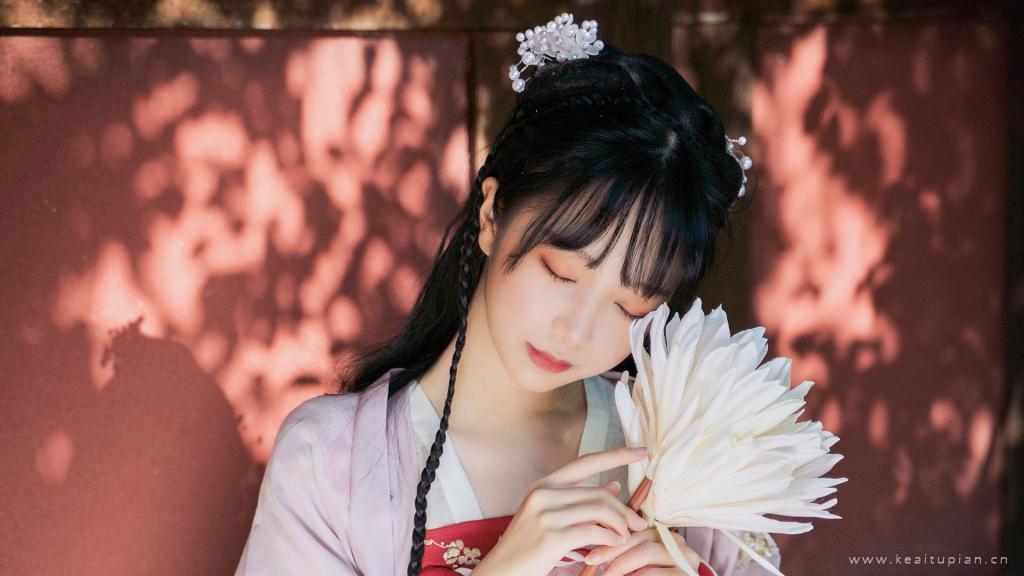 红墙汉服古风美女清纯唯温柔户外写真图片桌面壁纸
