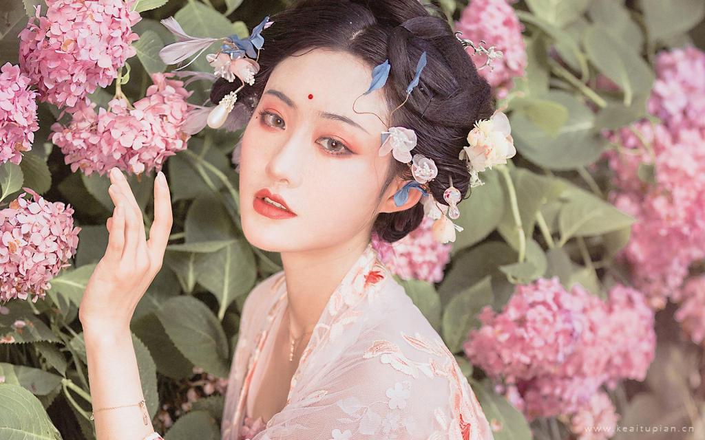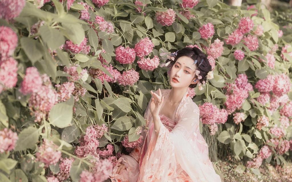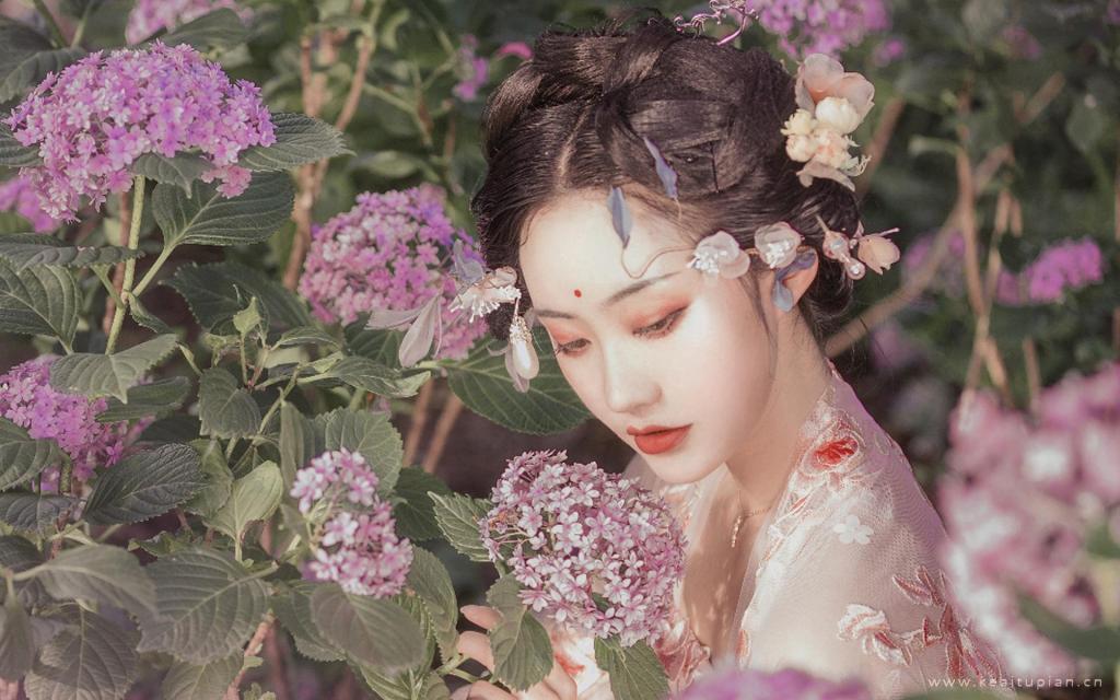 温婉古装美女在花海中唯美写真图片桌面壁纸
