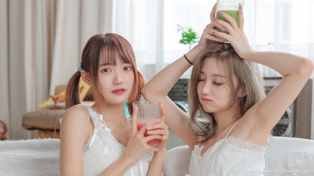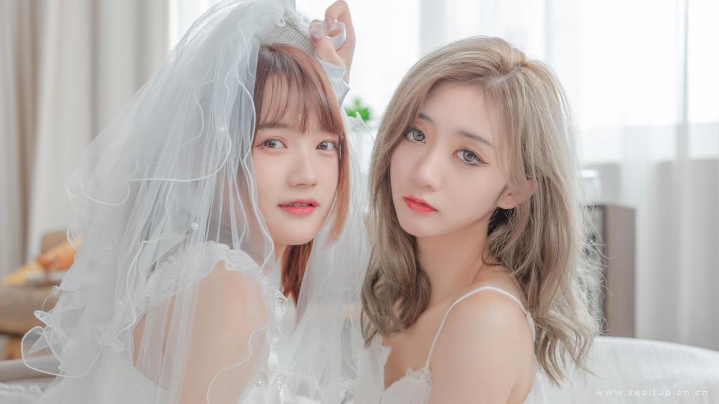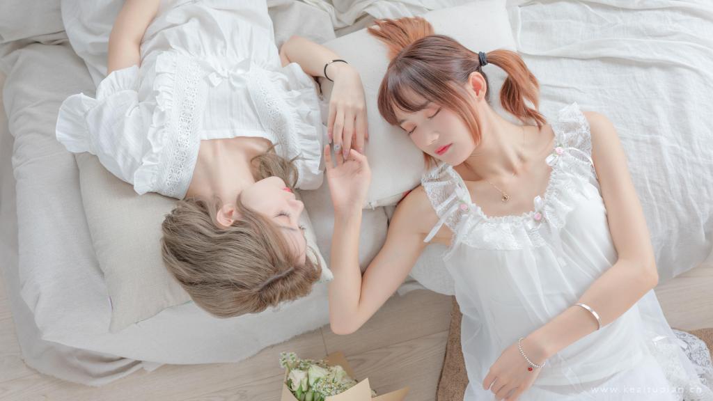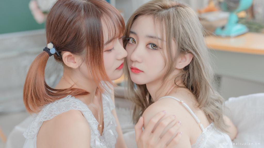 洁白吊带裙可爱姐妹花闺蜜私人写真高清壁纸图