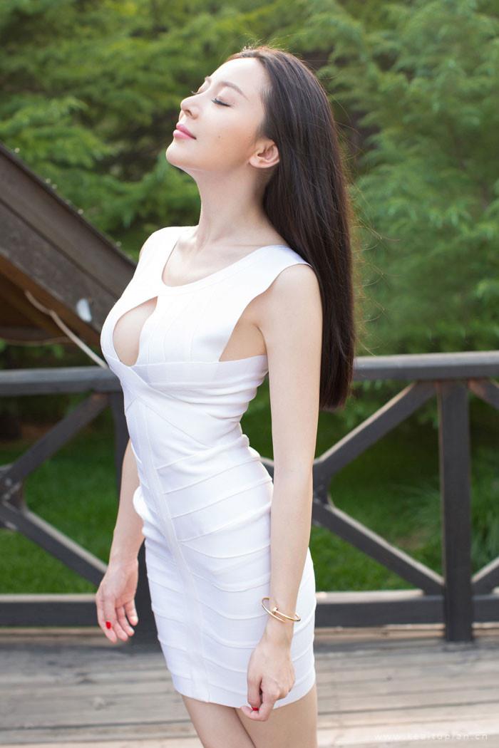 性感白色连体服美女侧乳诱人高清写真
