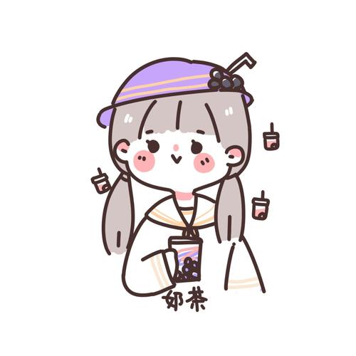 简笔画女生头像闺蜜头像芋泥啵啵奶茶