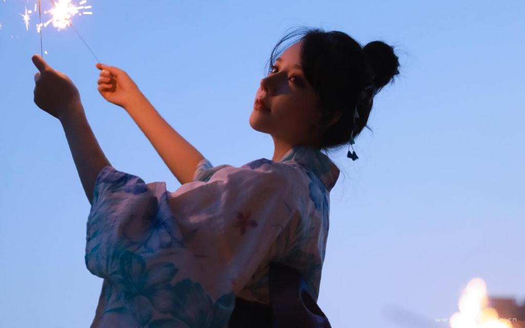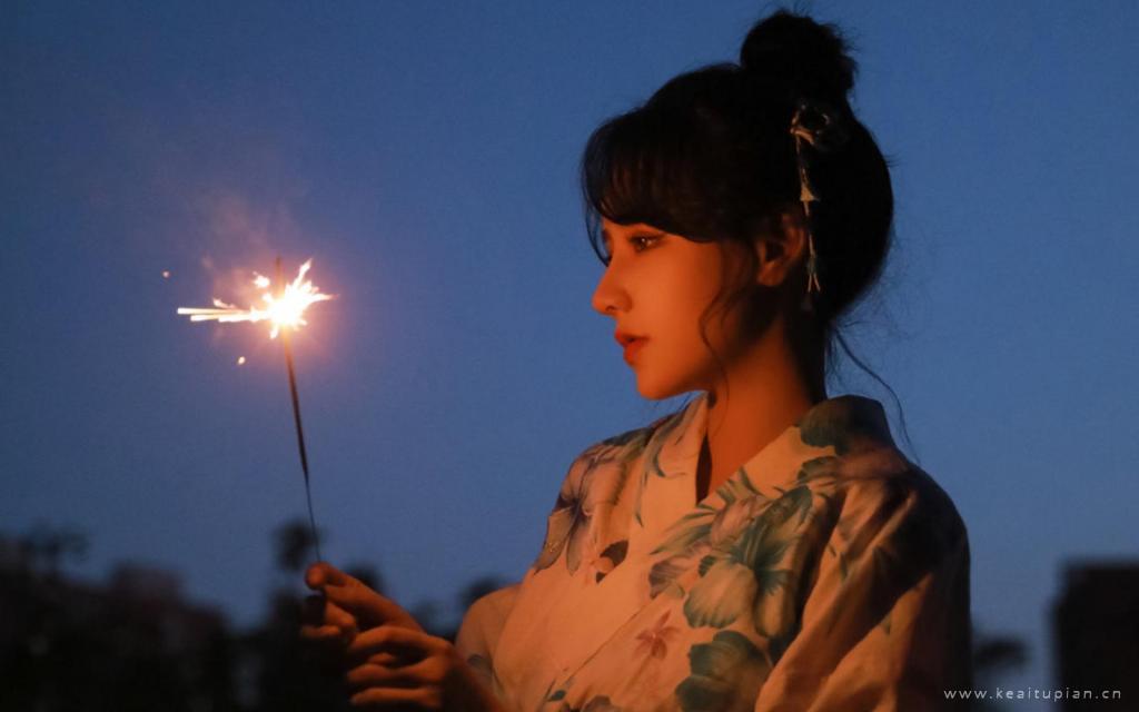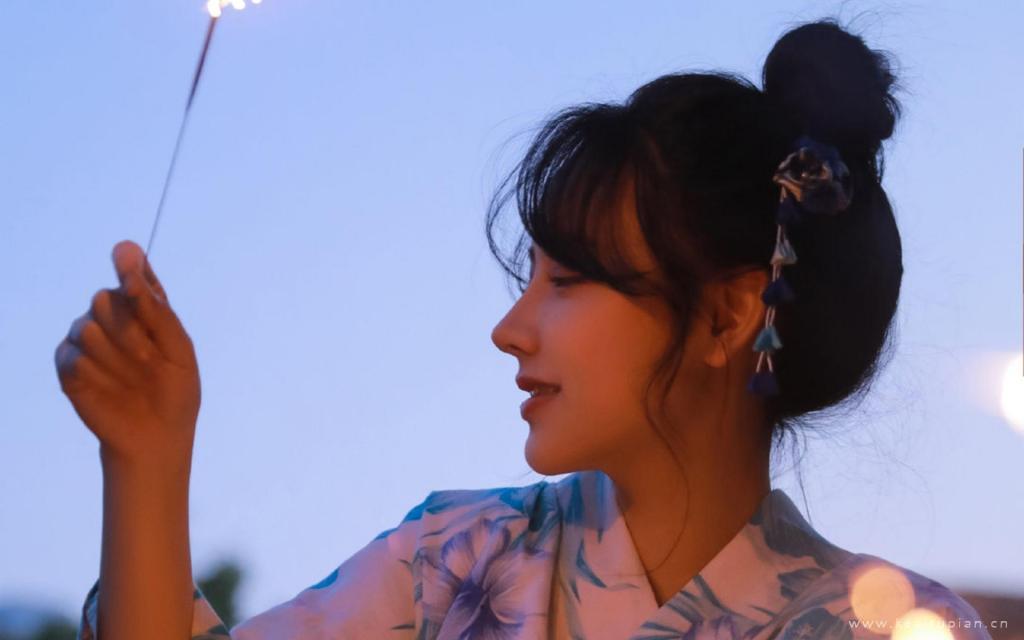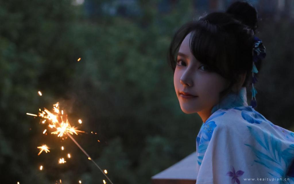 夏日和服美女烟火迷人可爱写真图片桌面壁纸