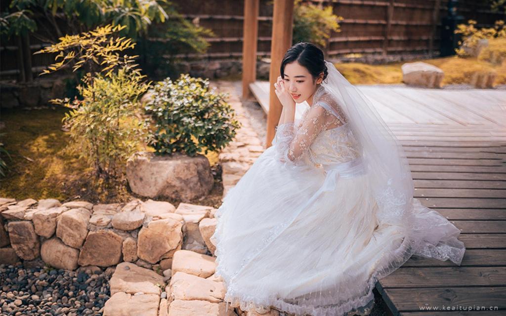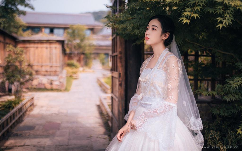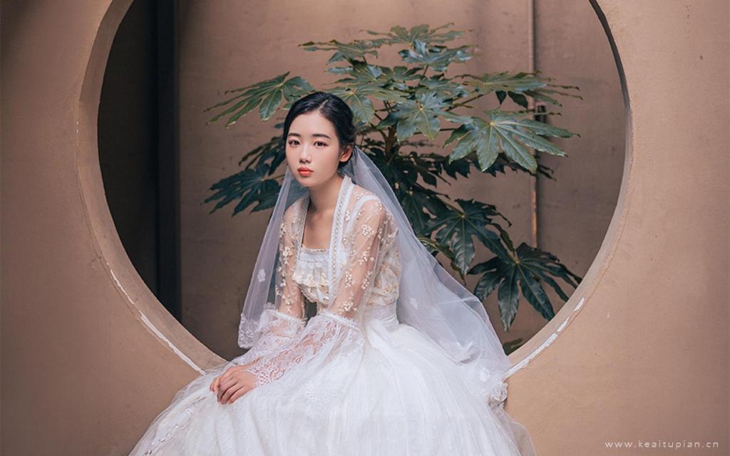 可爱少女婚纱优雅气质户外风景写真高清图片