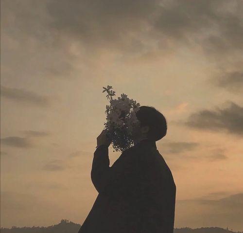 情侣头像捧花侧脸