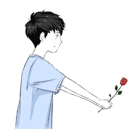 情侣头像动漫一个男孩拿着一朵玫瑰花,对面一个女孩用手捂着嘴,这张