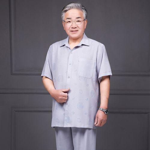 60岁老人衣服男_中老年唐装男短袖套装爷爷装夏装短袖衬衫 长裤套60岁