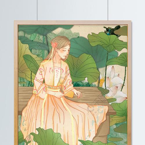 国潮复古中国风荷塘边的古风少女