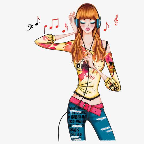 韩式音乐美女插画