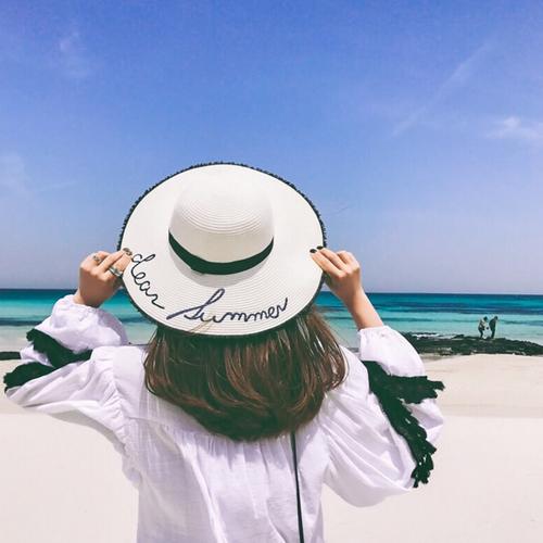 小草帽看海美女背影头像