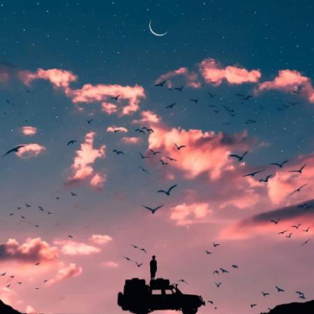 平涂插画 赛璐璐 唯美风景情侣头像 动漫夜空夕阳