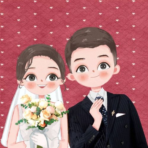 新品手绘b头像韩系风可爱卡通情侣画像定制漫画真人照片转手绘定