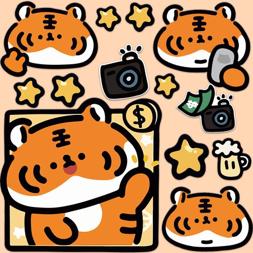 卡通可爱老虎行李箱贴纸虎年旅行箱吉他笔记本电脑ipad装饰贴画