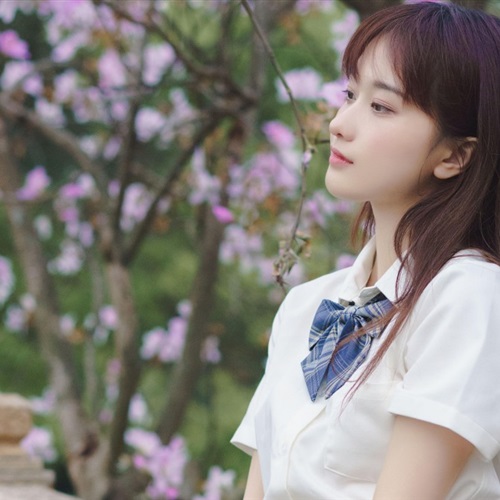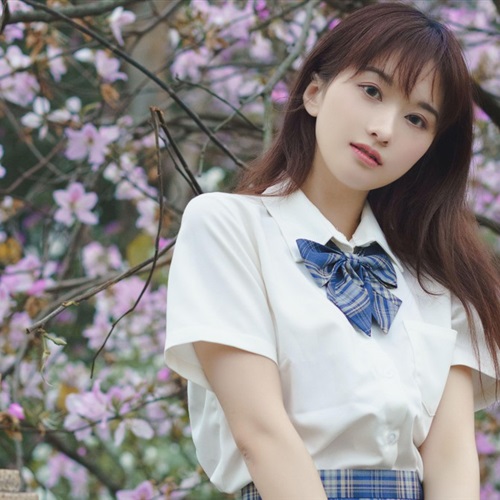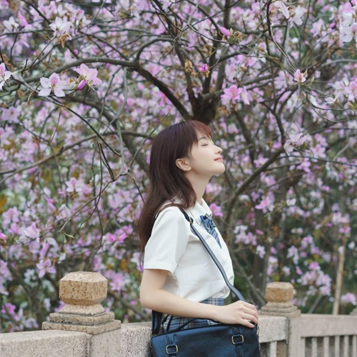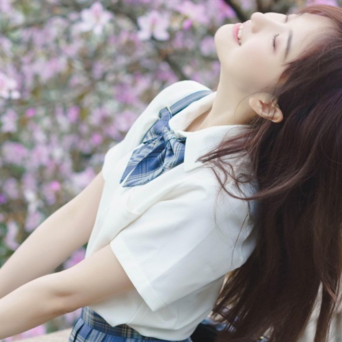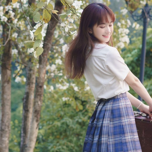 高中制服女生林中赏花唯美文艺头像图片