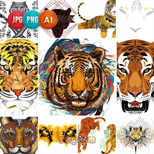 逼真老虎头像矢量素材