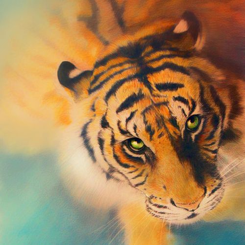 diy/数字油画动物老虎头像油画手绘手工减压油画客厅卧室装饰挂画
