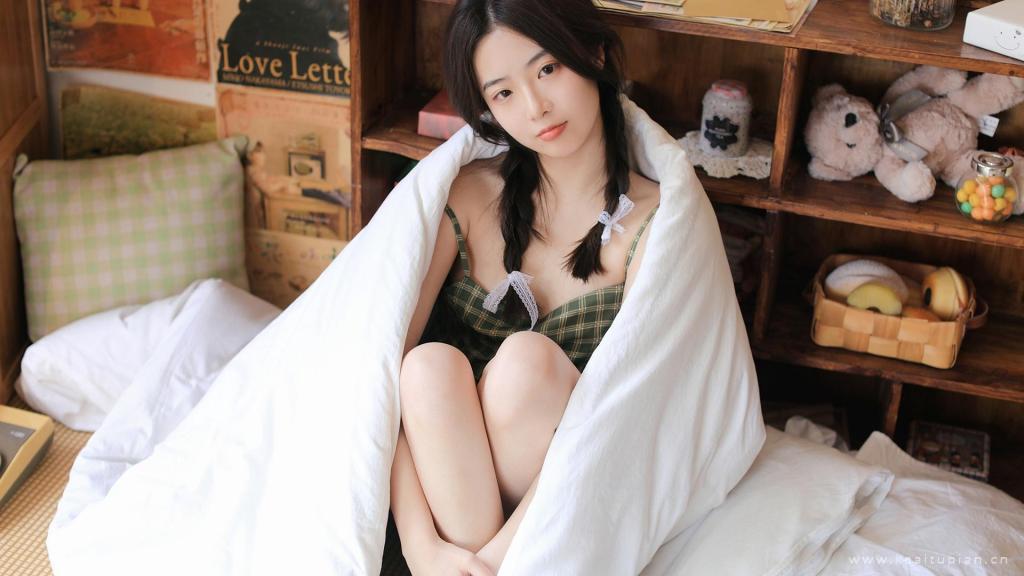 活泼可爱的美女双马尾居家写真图片娇俏可人
