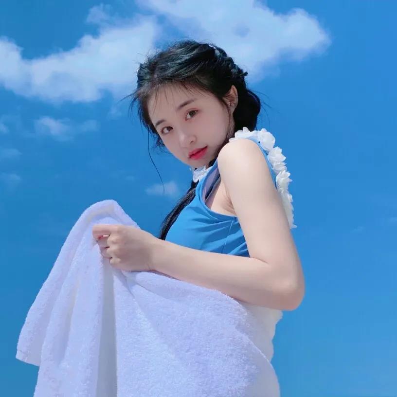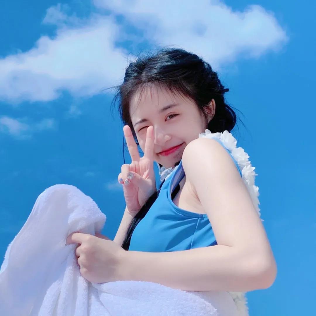 美女图片头像|活泼灵动的蓝色泳衣女生