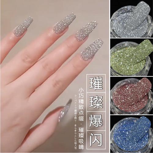 网红爆款超闪美甲黑色粉色反光水晶碎钻粉新款爆闪